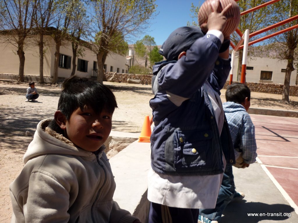 Nous arrivons au village en question après 2h de pédalage intensif. Bon, en fait ce n'est pas le village, mais l'école... Le village est encore 20min plus loin. Nous nous arrêtons discuter avec les institutrices. La plupart des profs viennent à pied de Humahuaca tous les jours (2h aller et 1h retour). L'école possède un internat car une 20aine d'enfants viennent de villages plus éloignés : 4 à 8 heures de marche. Ils ne rentrent donc que le WE à la maison.