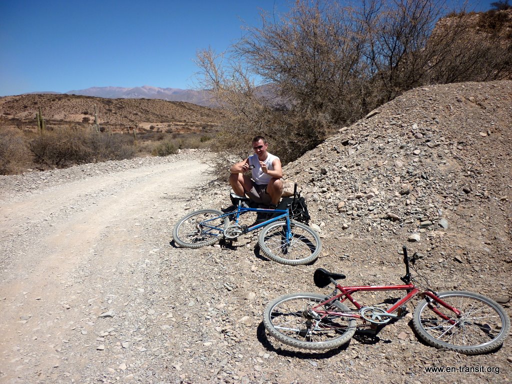 Le lendemain, nous louons 3 bicyclettes pour aller voire les ruines de Coctaca. Le chemin est bien caillouteux. Anne, qui ne se sent pas bien rétablie, nous abandonne après le pique-nique et rebrousse chemin. Elle a bien fait car le route est longue, en fausse pente tout du long et il fait une chaleur à décorner des boeufs. :) Les paysages sont quand même superbes... on se croirai dans un western !