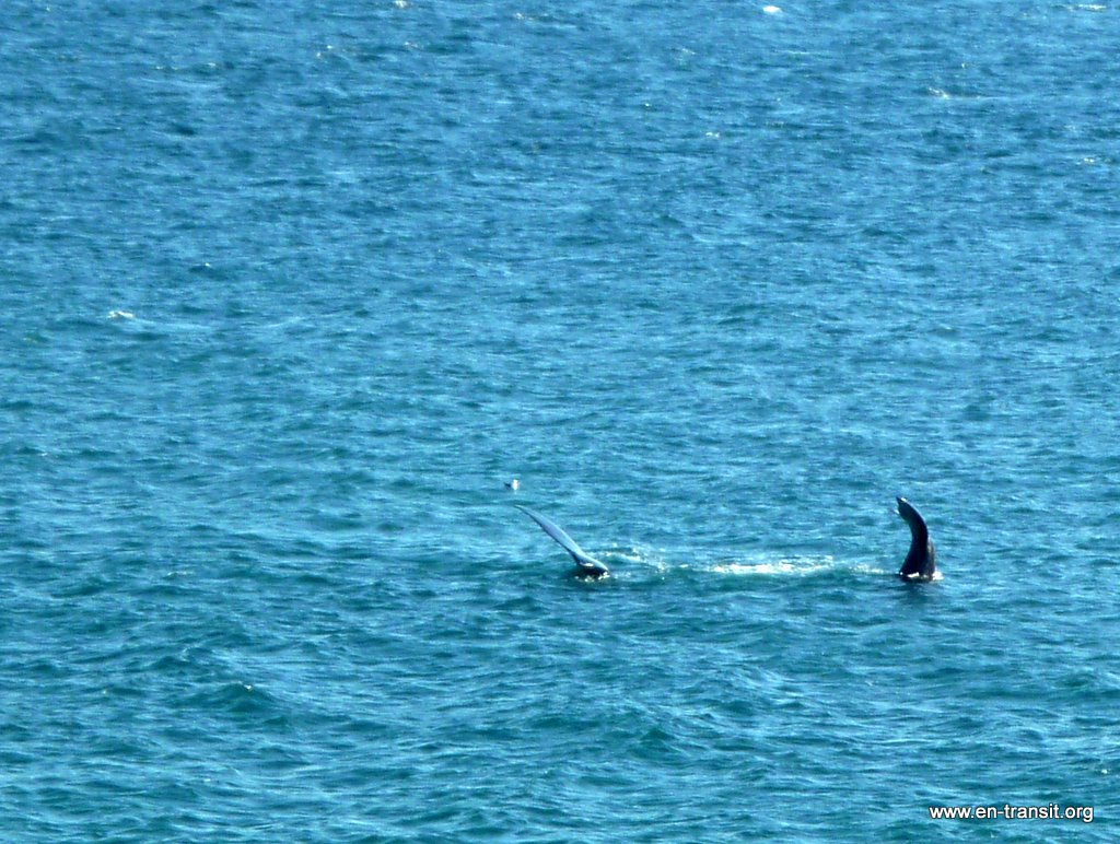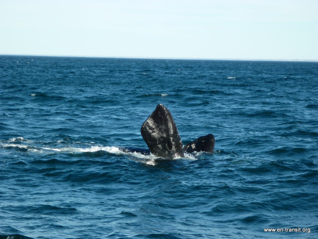 Un brin de toilette à la gare routière (ça ne fait pas trop bizarre de s'y débarbouiller : on le fait quand on sort du bus de nuit) puis nous allons retrouver nos deux compagnes de route. Direction la péninsule Valdès! On aperçoit en route une baleine et son baleineau. C'est top mais ça nous laisse une peu sur notre faim : on veut les voir de plus près !