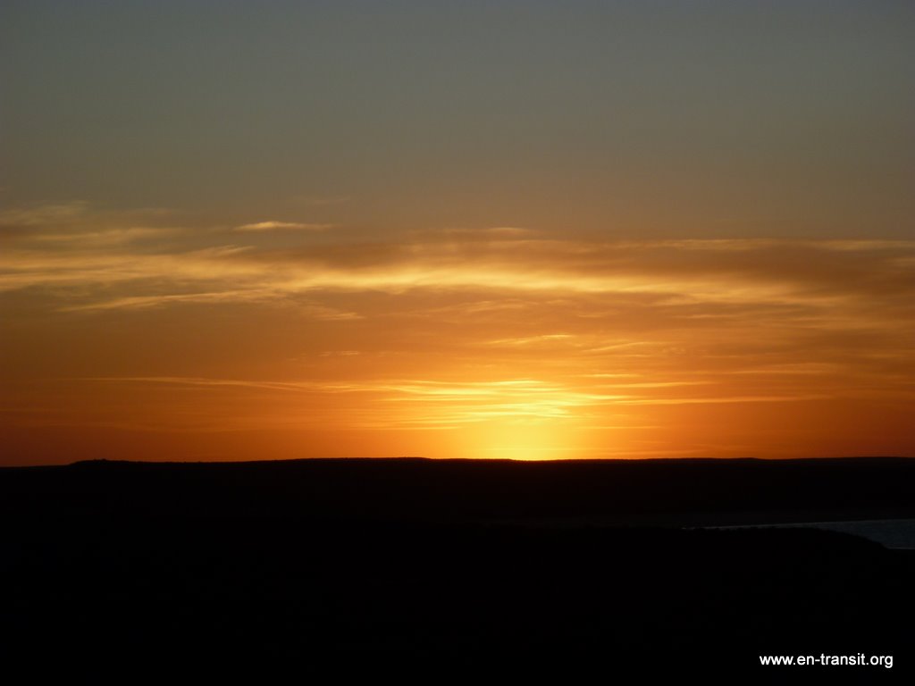 On se fait un coucher de soleil sur l'île de los Pajaros dont la forme aurait inspiré celle du boa-constricteur de St Exupéry dans « Le Petit Prince »... Cette information n'a aucun intérêt si tu n'es pas en avion et si tu n'as pas lu ce conte... (je n'ai fais aucun des deux). Nous passons une soirée sympa à boire du maté avec vue sur Puerto Pyramides et la mer.