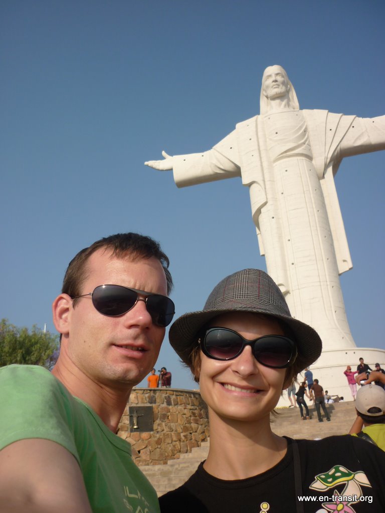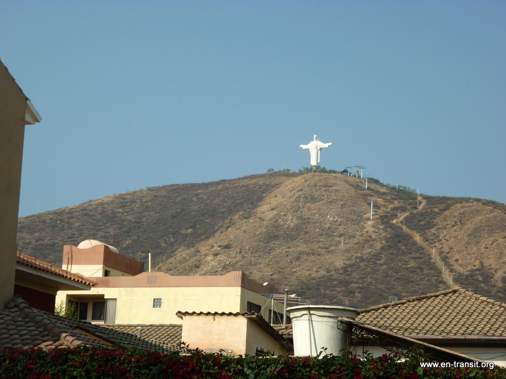 Nous nous sommes rendus sur une colline en hauteur de Cochabamba pour admirer le Christ de la Concordia qui ressemble à celui de Rio de Janeiro, en plus grand... de quelques mètres. Et ce qui est amusant, c'est qu'on peut même rentrer à l'intérieur et grimper jusqu'aux bras afin d'admirer la vue! Montée en téléphérique parce qu’apparemment, les détrousseurs se cachent le long des marches qui y accèdent...