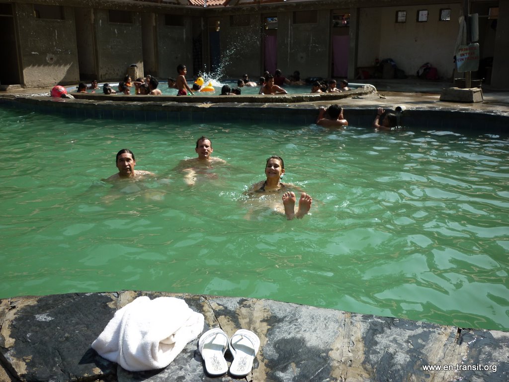 Nous nous sommes rendus aux bains thermaux de Lilluni avec Miguel et Francisca. Pour nous qui avons eu le loisir de goûter aux eaux thermales de Bagnères de Bigorre, l'infrastructure était plus que spartiate : des cabines mais pas de portes, des toilettes douteuses qui ne ferment pas non plus, une piscine sans abords pour étaler sa serviette. Nous avons trempé pendant 2 heures dans une eau très agréable. Difficile d'y nager, vu l'affluence. Ensuite, nous sommes allés dans ce qu'ils appellent des bains privés où il y une petite piscine, remplie à hauteur de genou avec de l'eau bouillante. Nous avons passé un bon moment mais n'avons pas été conquis par le lieu. Nous n'en avons trop rien dit car pour Miguel et Francisca c'était une sortie exceptionnelle qu'ils s'offraient. C'est eux qui nous avait parlé de cet endroit où ils n'étaient pas revenus depuis 13 ans!