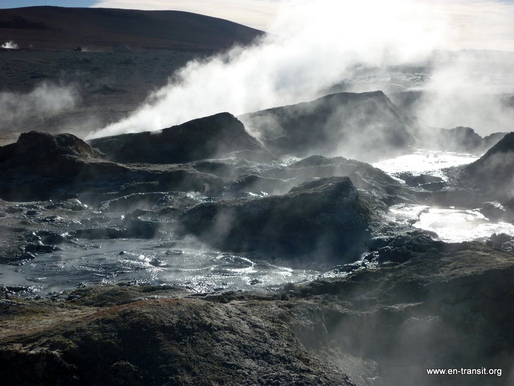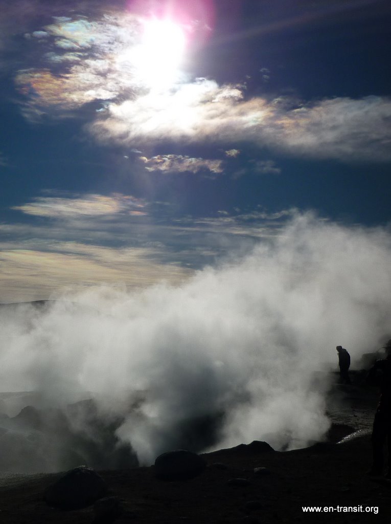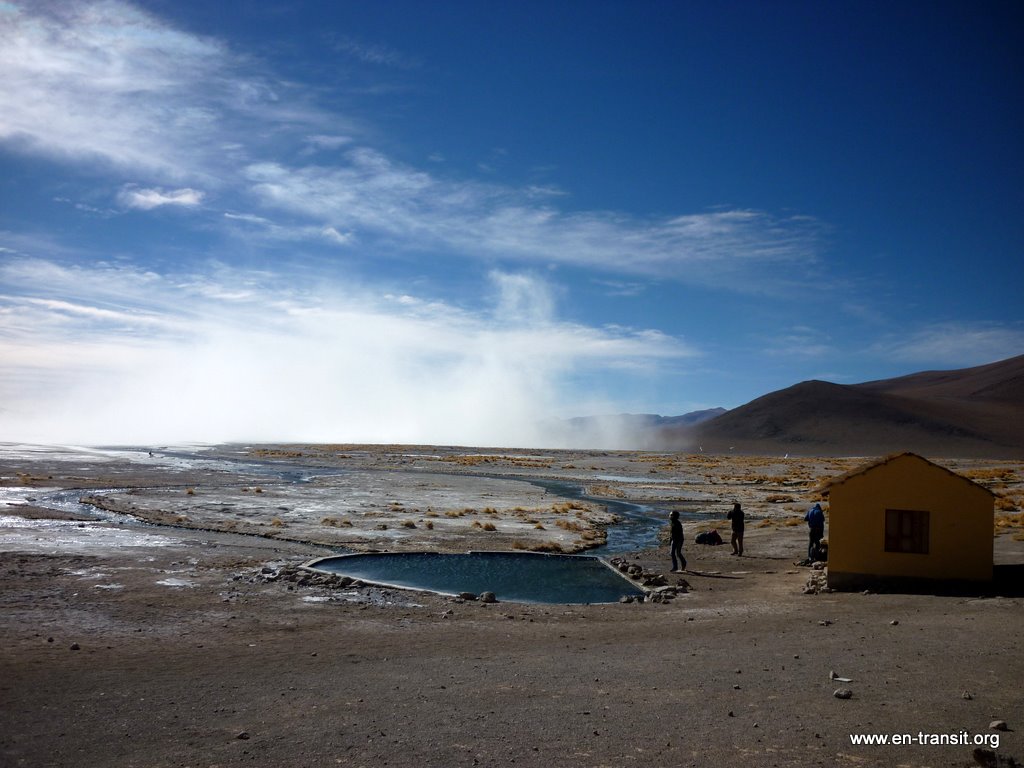 Nous entrons au Chili vers 12h. Il fait 2000m de moins et 20°C de plus. Le village de San Pedro de Atacama est hyper touristique et assez sympathique. Le passage de douane est drastique : fouille des sacs obligatoire! Sinon, nous sommes heureux d'arriver dans un pays où les WC publics sont propres et pourvus de savon!