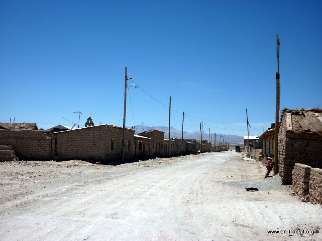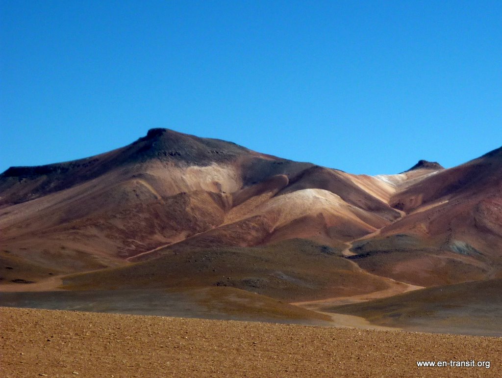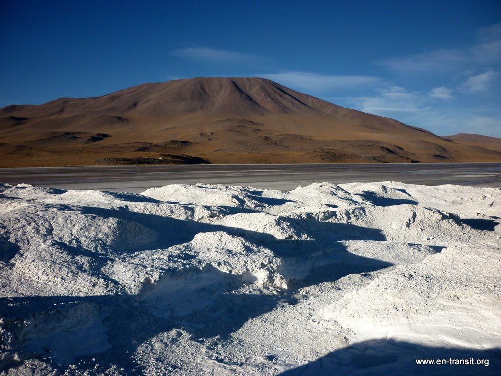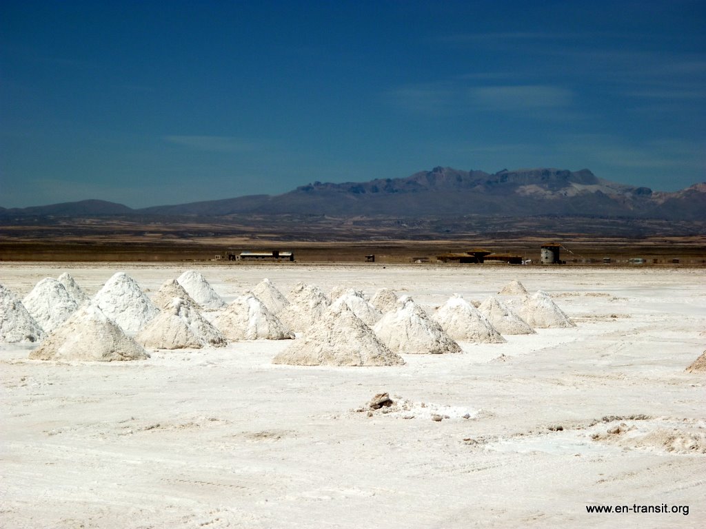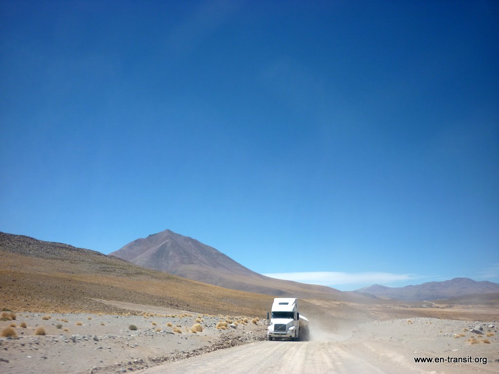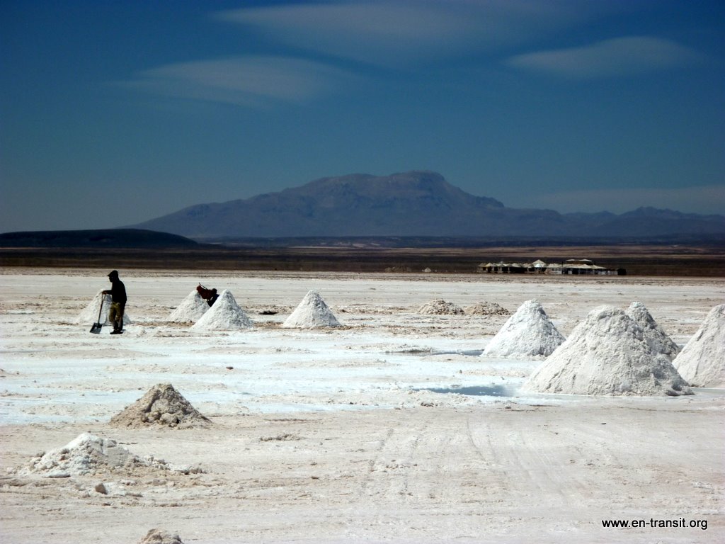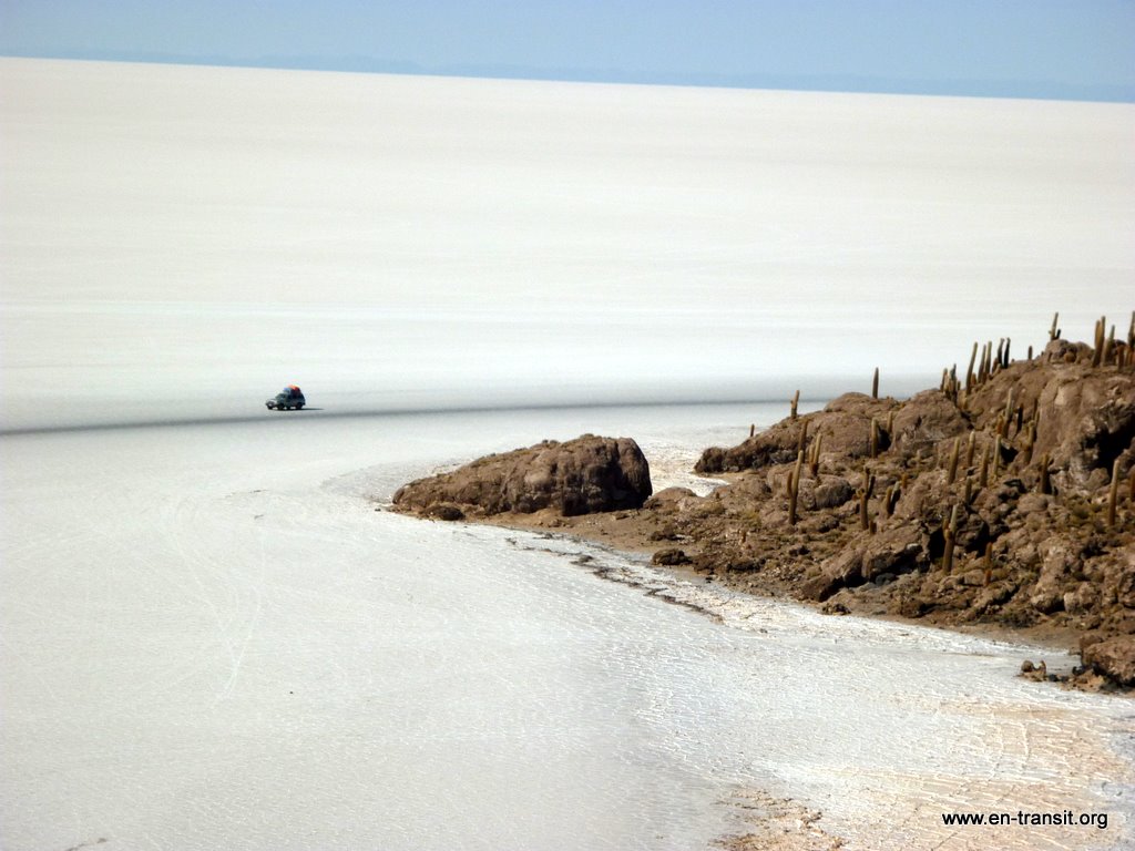 Notre chauffeur, Primo, est peu loquace et n'est guide que sous la torture. Par contre pour ce qui est de la picole, comme nombre de ses collègues, il est loin d'être le dernier. Il est rentré en titubant de sa folle soirée et a été vu avec une bière à l'aube. Aussi le matin du second jour, nous lui trouvons un air bien fatigué : il baille toutes les 2 minutes et fais de nombreux écarts sur la piste... Heureusement, la piste en question est large et, au pire, au delà de la piste, ben... c'est totalement plat :) Donc, il y a peu de chance de mourir d'une sortie de route. Nos seuls moments de frayeurs réels sont quand nous croisons des camions. Pour nous rassurer, il se remet un coup de gnôle à chaque arrêt : son haleine chargée à chaque retour dans le 4x4 en témoigne. Par ailleurs, il ne se nourrit que de feuilles de coca, ou se fait payer à manger dans les bouibouis où il amène ses touristes... pendant que nous attendons bêtement à l'extérieur.