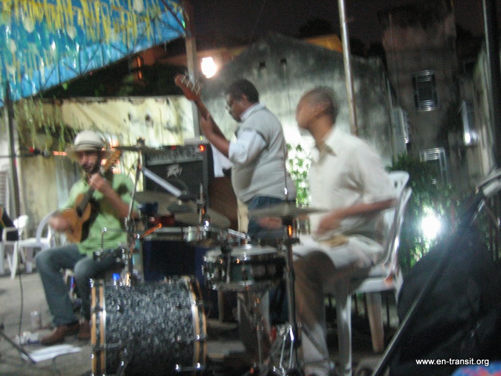 Le samedi soir nous sommes allé à Lapa, quartier festif de Rio, pour tâter l'ambiance d'un club de Samba. Le "Democratico" nous avait été recommandé par l'auberge et nous y sommes arrivés vers 23h30 après avoir un peu tourné en rond. Nous avons payé moitié prix étant dans les 300 premiers arrivés ;) Oui, ça commence assez tard... La salle s'est remplie et l'orchestre a commencé à jouer vers minuit. Bon, l'ambiance n'est pas aussi folle que ce que nous nous imaginions mais on nous avait plutôt recommandé d'y aller le vendredi... Enfin bref, après avoir beaucoup observé nous nous sommes jeté à l'eau. Mais après quelques essais peu concluants de votre dévoué serviteur qui est un bien piètre danseur (encore plus avec des chaussures de rando) pour faire virevolter sa femme chérie, il s'est avoué vaincu et est sorti du ring.