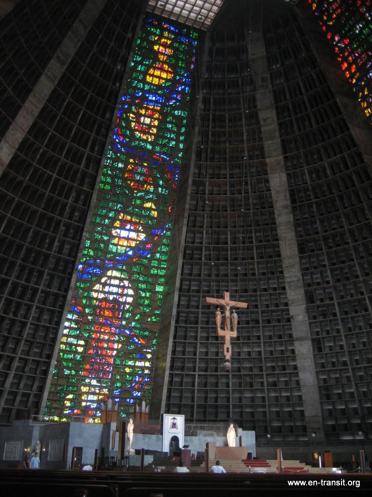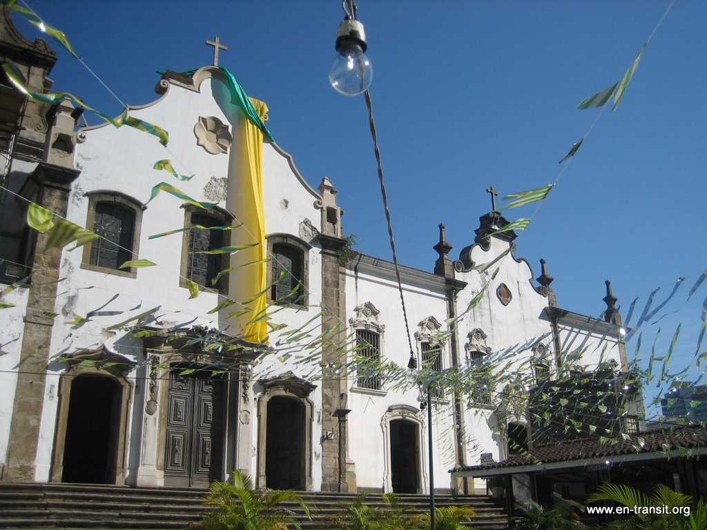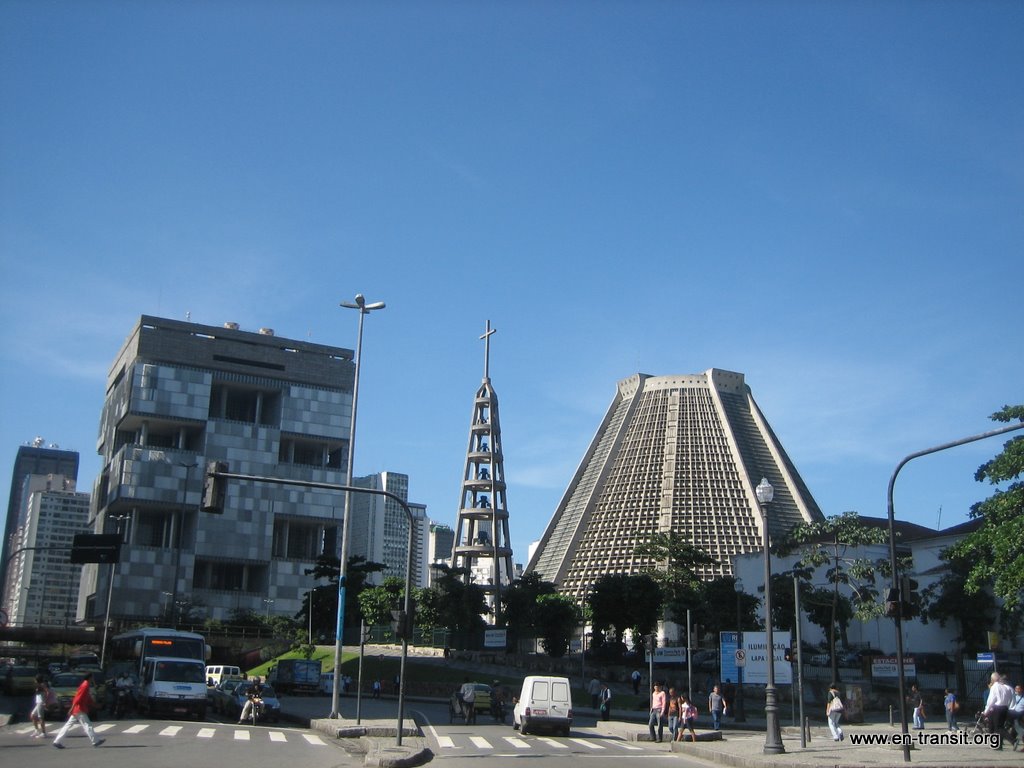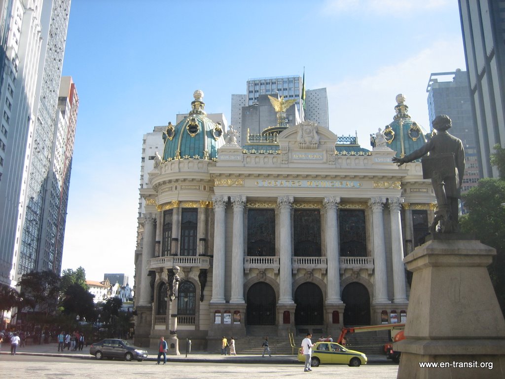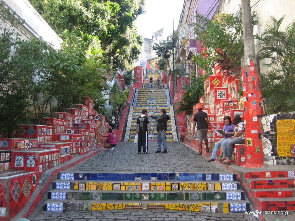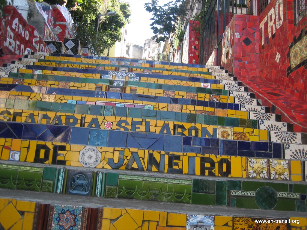 Nous avons consacré une partie de notre premier jour à la visite du 'Centro'. Nous nous y sommes rendu en métro, assez moderne et bien entretenu. Notre promenade nous a permis de découvrir de nombreux monuments dont le magnifique théâtre, le cubique immeuble Petrobras, la très rococco église de Santo Antonio, perchée sur une butte au milieu des buildings, le Real Gabinete Português de Leitura où trônent pas moins de 350000 ouvrages en portugais, l'étrange cathédrale Metropolitana et le bohème escalier Selaron.