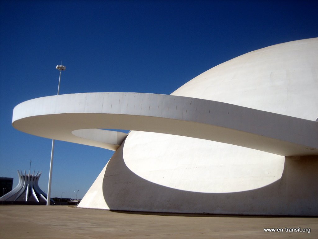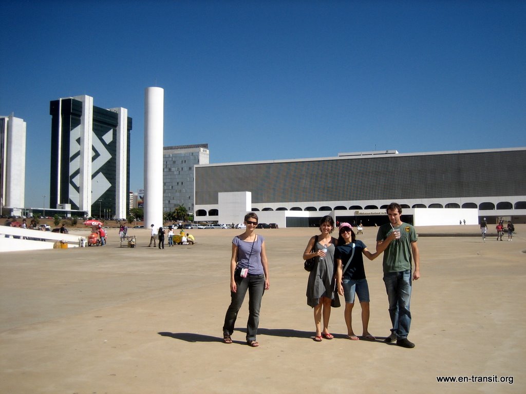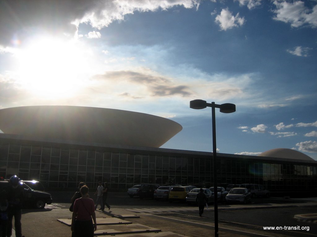 Nous avons également rencontré un couple de couch-surfers, Renata et David. Comme on ne pouvait pas dormir chez eux, on leur a proposé de se voir pour boire un verre. Renata s'est même proposée pour nous guider en voiture dans la ville. Elle a changé son emploi du temps de travail et nous emmenés avec sa sœur et son beau-frère de passage sur la capitale faire un tour. Nous avons donc vu une exposition sur le travail architectural de Costa, collègue de Niemeyer, le concepteur de la ville. Le Musée à lui seul mérite le coup d’œil : c'est une demi-boule, soucoupe volante perdue au milieu d'une place immense. Nous avons été à une exposition très colorée de Poteiro, peintre portugais qui vivait au Brésil. Puis nous avons fait un tour de la ville en voiture...