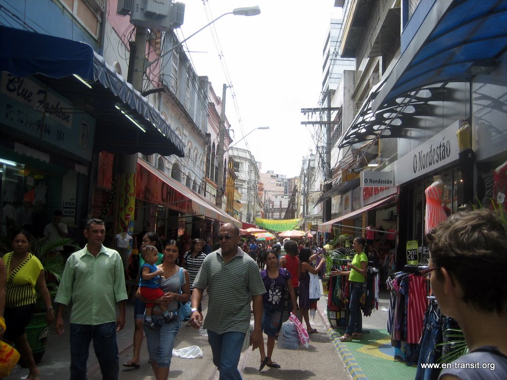 A la sortie de l'aéroport, une chaleur moite et étouffante nous transforme en éponge géante. Mais arrivés en ville, nous nous sentons comme des poissons dans l'eau. Nous ne voyons pas bien pourquoi d'ailleurs. Objectivement, les rues ne sont pas belles mais pleines de vie. Le contraste avec Brasilia doit jouer un peu aussi... Sur le chemin de l'auberge, nous croisons de nombreuses échoppes (certaines vendent des faux-culs pour rembourrer les fesses de celles qui n'en ont pas assez).
