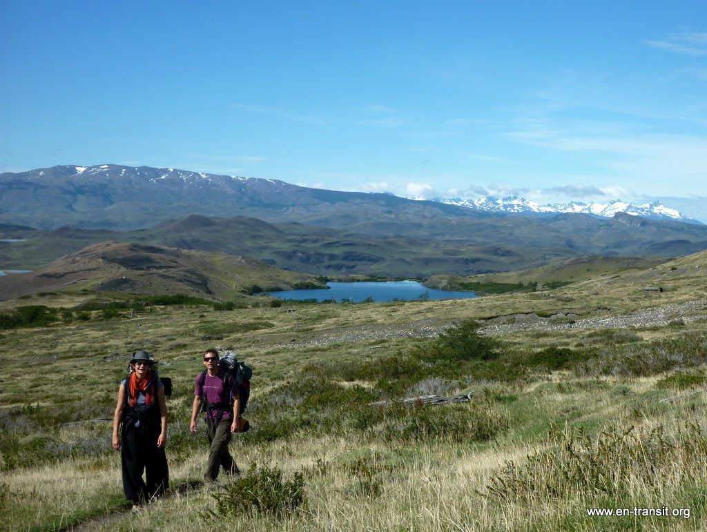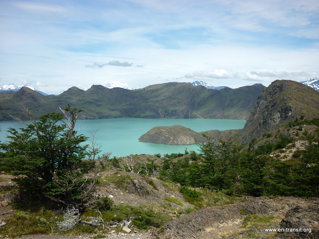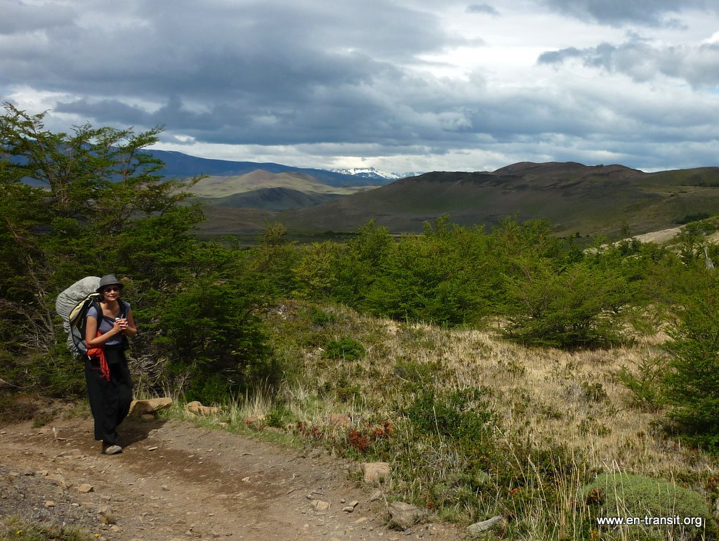 Nous déménageons en fin de journée jusqu'au campement Pehoé. Le temps se lève, le vent aussi. La marche de 2h est chouette même s'il est parfois difficile à Anne de garder l'équilibre face aux bourrasques...