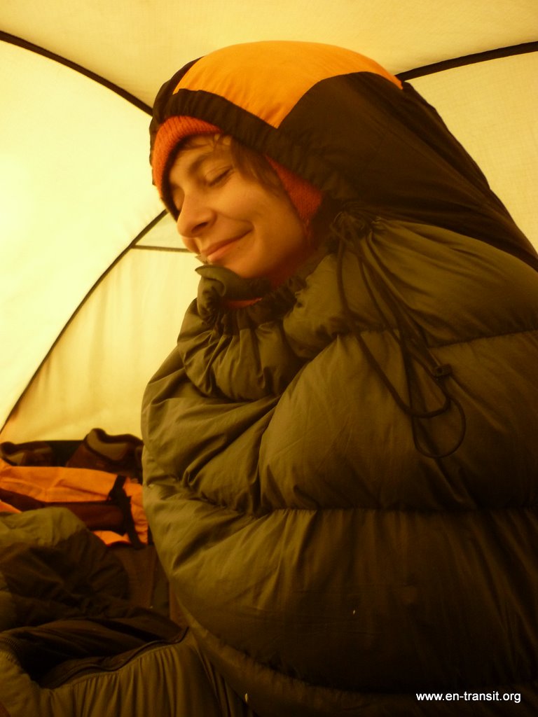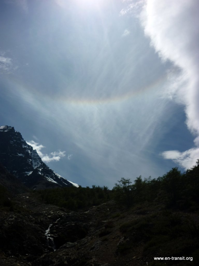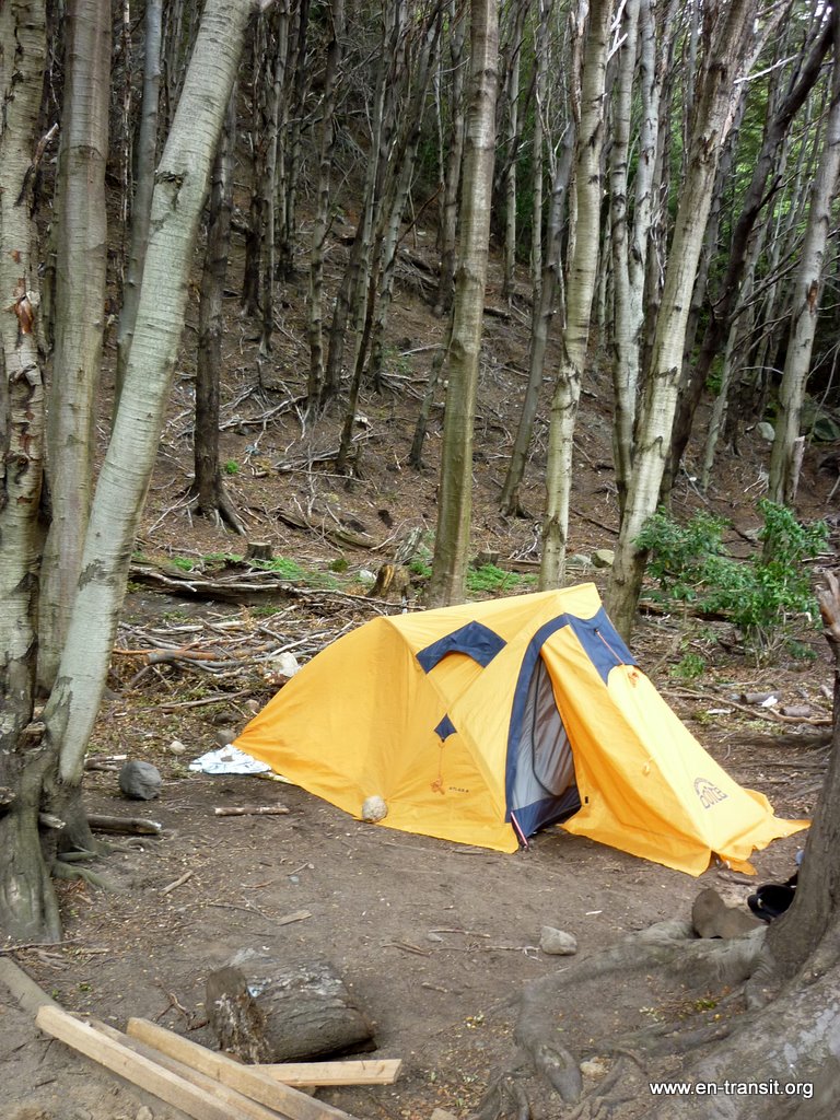 Le déluge redouté ne se produit pas, nous essuyons seulement quelques pluies fines de courtes intensités :) Nous faisons la rencontre d'un américain alors que nous nous préparons un café chaud. Ce sympathique jeune de 23 ans insiste pour parler en espagnol. Il a quitté son pays 2 ans auparavant après avoir terminé ses études de chimie. Refusant la société dans laquelle on lui imposait de vivre (travailler comme un nègre pour faire beaucoup d'argent), il a décidé de partir et fait des petits bouleaux. En arrivant à Buenos Aires 1 an plus tôt, il a donné des cours d'anglais et de chimie afin de vivre et d'apprendre l'espagnol. Là, il cherchait a se faire embaucher par un des refuges du parc pour la saison (ça fait donc 2 semaines qu'il campe ici et parcours le parc). Il s'est découvert une vrai passion pour les langues et la rencontre d'autre cultures et pense continuer ainsi vers le Brésil, puis la Turquie.