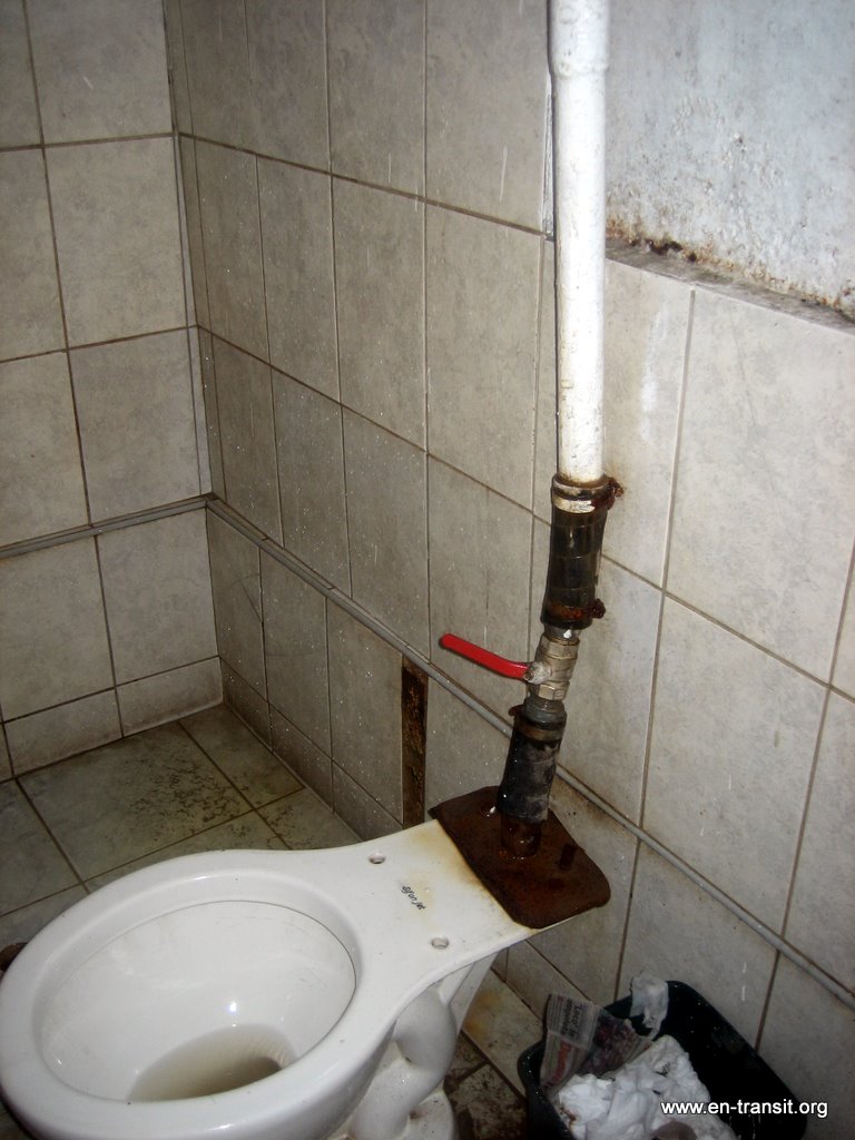 Les toilettes/salle de bain sont dans un état détestable. Les portes sont en bois, avec des lattes obliques qui permettent de laisser entrer la lumière sans être vus de l'extérieur mais qui permettent de voir les gens qui papotent quand on est sur les toilettes, ce qui est assez déstabilisant. Des portes très ajourées qui ferment ou pas, des douches crados, un plafond qui suinte (quoi? Je ne préfère pas savoir), des toilettes bouchées et des éviers qui manquent, un peu à la Trainspotting... Pardonnez-moi pour les détails de ma vie intime, mais imaginez mon bonheur quand, en plus, j'ai découvert que j'étais indisposée...