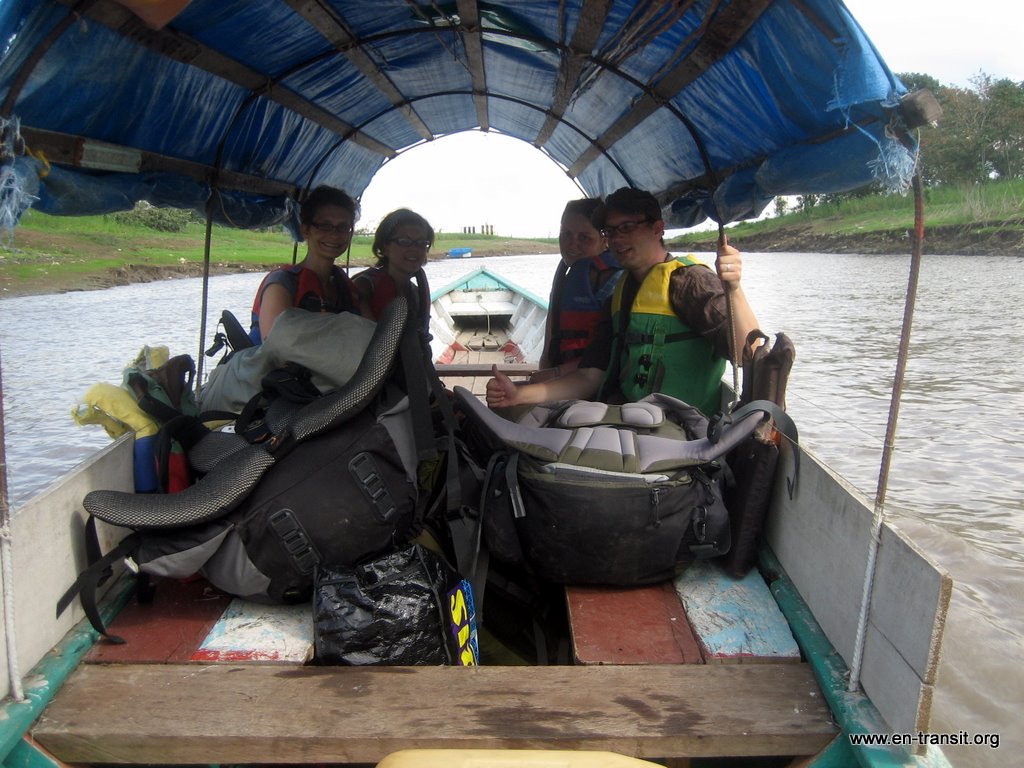 Durant le voyage, un orage a éclaté et l'eau rentrait dans le bateau, malgré les bâches en plastique. Laura et Kate ont vu leurs affaires trempées! Pas de catastrophe pour nous...
