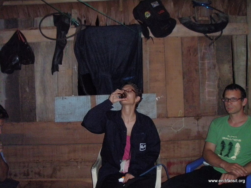 Le chaman est arrivé relativement tard car il travaille dans une usine de mise en bouteille de bière, apparemment, en tant qu'ouvrier. Comme quoi, chaman à Iquitos n'est pas si lucratif que ça! Ca m'a un peu rassurée...