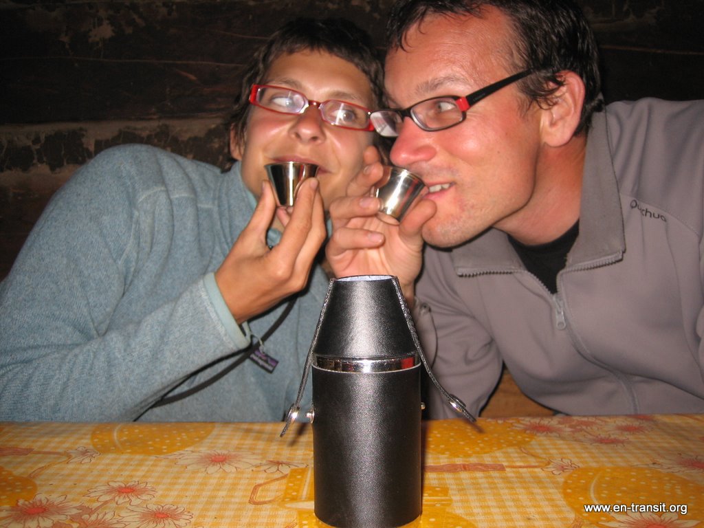 Pour ma soirée d'anniversaire, Renaud a fait d'énormes efforts : il a mis une nappe (son écharpe), des bougies (en même temps, c'est le seul moyen d'avoir de la lumière ;) ) et apporté une bouteille de vin rouge péruvien, un peu râpeux, mais tellement réconfortant! Au menu, à la place du steak argentin de 500g que je m'étais promis; du riz, une patate et une truite fraîche pêchée du jour (ouf, j'ai réussi à éviter le poulet!). En dessert, nous avons mangé une salade de fruits car la boulangère qui devait faire un gâteau s'est saoulée à la bière la veille et n'était pas en état de le confectionner (pauvre Renaud qui s'était pourtant donné tant de mal...)! Comme cadeaux, j'aurai droit à un massage, une nuit dans l'hôtel de mon choix (il faut dire que celui là manque un peu de cachet) et un plateau de fromage (c'est ça de partir à l'étranger, on fantasme beaucoup sur la bouffe qu'on pourra se faire en rentrant ou quand on sera dans une grande ville)!!!! On finit la soirée en buvant le reste d'aguardiente!