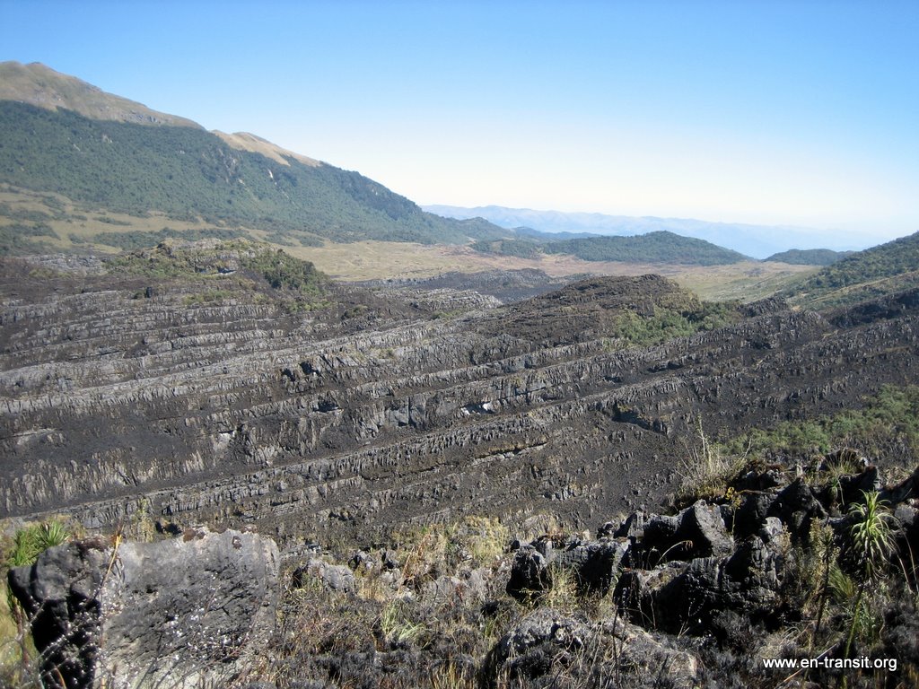 Le matin du retour est très pénible. Nous partons à 7h du matin et il fait extrêmement froid. On voit le soleil au sommet des montagnes mais on se gèle sur nos chevaux. Le paysage est blanc de givre et par endroit, il y a même de la glace. Je ne sens plus mes mains ni mes pieds et j'ai l'impression que je ne me réchaufferai jamais. Le soleil atteint, ça va nettement mieux et le reste du trajet se passe sans encombres. Une fois de plus, la plaine a brûlé: Clemente nous explique que c'est pour étendre la superficie des pâturages. Ca donne une impression de désolation et le paysage est nettement moins beau qu'à l'aller!