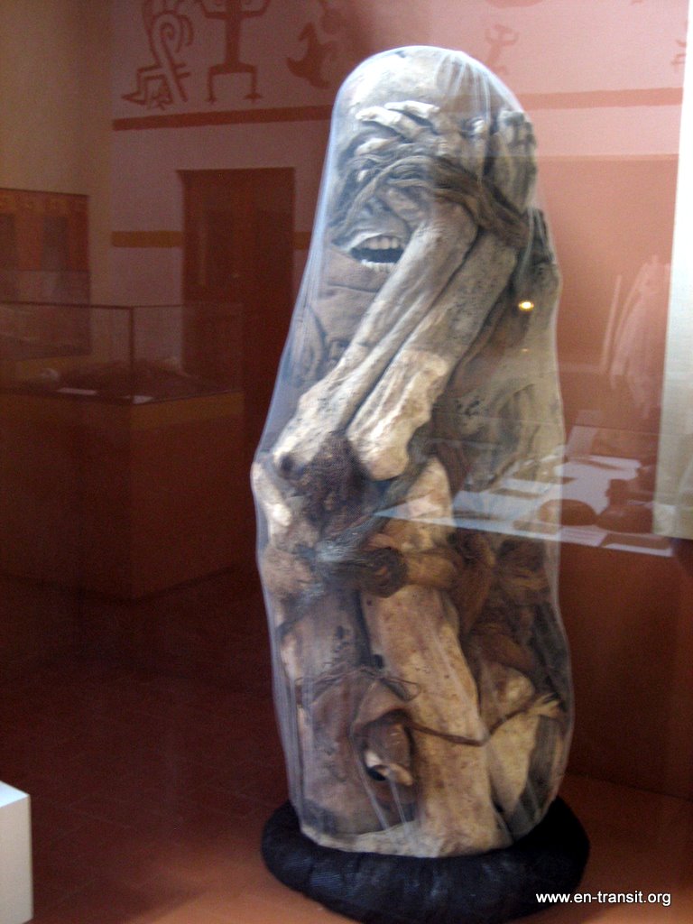 La momification des personnages importants n'est intervenue que tardivement, après la colonisation Inca. En effet, les incas désarticulaient les cadavres pour leur faire prendre la forme souhaitée (en particulier, les mains qui cachent les yeux, les oreilles mais jamais la bouche qui est la voie de l'esprit) et les emballaient dans six couches de textiles différentes avant de les enfermer dans un sarcophage. Les chachapoyas ont eu envie de faire pareil avec leurs morts importants et les ont donc déterrés, ont assemblés les os, les ont fixés avec des cordes et les ont emballé dans du tissu puis des sarcophages : c'est pourquoi certaines momies sont minuscules. Les 219 momies de la laguna y sont exposées.