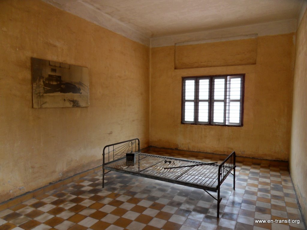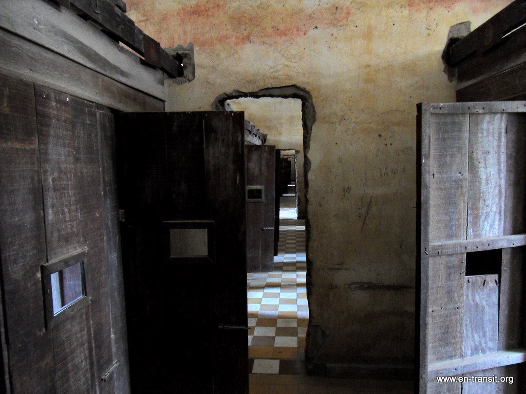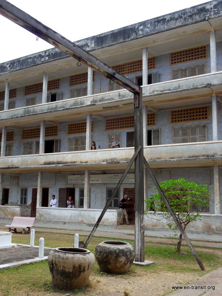 Tuol Sleng, en plein cœur de Phnom Penh, est aujourd'hui un musée. A l'origine c'était une école qui fût reconvertie en centre de sécurité sous Pol Pot. Les salles de classes furent découpées en cellules ou converties en salles de torture. Le centre S-21 est tristement célèbre pour le nombre de victimes qu'il drainait : plus de 100 morts par jour après interrogatoires et tortures à sa plus forte période. Lors de la visite, on découvre les bâtiments, les photos de nombreuses victimes (les Khmers Rouges, à l'instar des nazis, fichaient leurs victimes), des peintures, des récits de rescapés et les résumés des procès toujours en cours de quelques dirigeants khmers rouges. Quand les vietnamiens ont libérés le Cambodge en 1979, seuls 7 survivants furent libérés du camp S-21 : tous peintres ou photographes. Le plus difficile à comprendre, c'est que la plupart des victimes étaient prélevées au hasard dans la population (et aussi bien dans les rangs des khmers rouges). On leur faisait avouer être des agents de la CIA, du KGB ou participer à une conspiration quelconque. Ce qu'ils finissaient tous par faire avant d'être de toute façon exécutés.