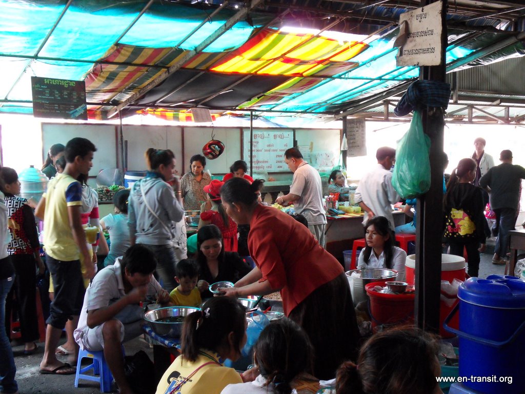 Après de délicieuses brochettes sur le marché, nous retrouvons dans le bus pour Siem Reap une ambiance quasi-péruvienne : musique à fond !!!