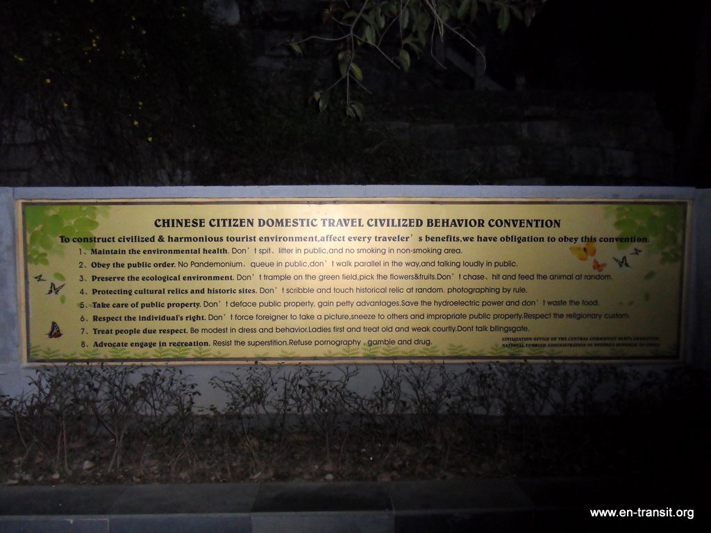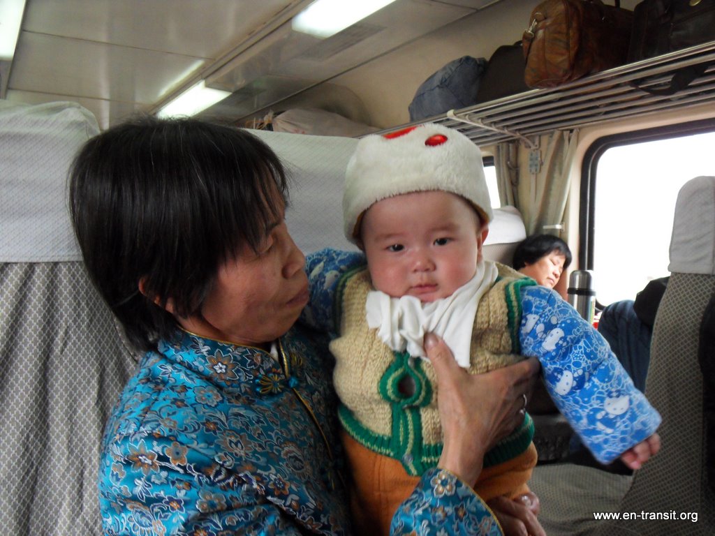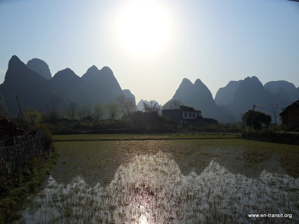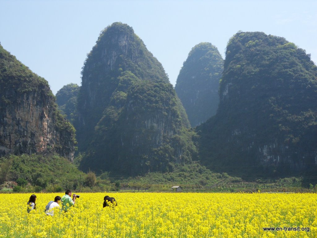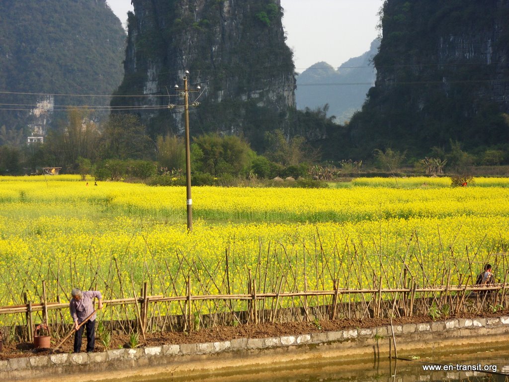 Nous repartons sur Guilin où nous nous confrontons une nouvelle fois à la barrière de la langue. Nous passons 3h pour réserver nos billets de train pour Yizhou ! Je détaille un peu histoire que vous vous rendiez compte de la difficulté.:) On se pointe une 1ère fois au guichet avec notre phrase écrite en chinois « Bonjour, nous souhaiterions acheter 2 billets de train pour Yizhou pour demain. ». La dame nous dit un truc que nous ne comprenons pas et par conséquent repartons bredouille. Direction la station de bus, nous tombons sur le CITS (office de tourisme) qui bizarrement ne vend pas de billet. A la gare routière, on nous fait comprendre qu'il faut aller ailleurs et on nous écrit un truc en chinois sur un papier... la seule chose compréhensible est « 91 ». Au guichet information, on nous montre l'autre côté de la rue. Nous y allons. On redemande. On nous montre l'autre côté de la rue... On croit comprendre qu'il faut chercher le n°91 dans la rue où se trouve sûrement une agence de voyage qui pourra nous vendre des billets. Après s'être fait balader encore 45min, nous retournons au CITS où on nous explique (ils parlent un peu anglais) qu'il faut prendre le bus n°91 pour se rendre à une autre gare routière... Elle est loin et nous n'avons pas le courage d'y aller. Nous retournons la gare ferroviaire où nous trouvons un gentil monsieur qui parle anglais et qui nous aide à prendre nos billets. Il nous laisse aussi sa carte de visite si on souhaite le contacter lors de notre prochain passage à Chengdu. Bref, nous repartons avec nos billets, fourbus mais contents... C'est la lutte, mais on s'éclate !