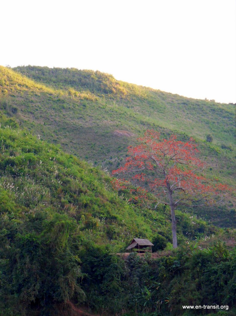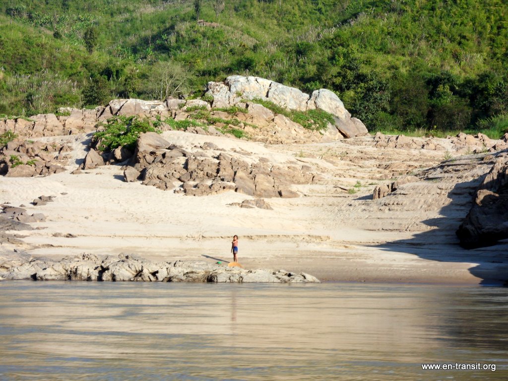 Nous nous arrêtons passer la nuit à Pak Beng, un petit village où le touriste est attendu tous les soirs avec impatience... « Marijuana ? Opuim ? ». Tiens, il faut que je vous entretienne à propos d'une autre pratique du village. Bon, vous savez tous ce qu'est un « happy hour » : entre certaines heures de la journée, le pub vous offre une pinte pour le prix d'un demi. Ici, à l'« happy hour », on vous sert avec un grand sourire et on vous fait payer la boisson 20% plus chère qu'ailleurs. :)