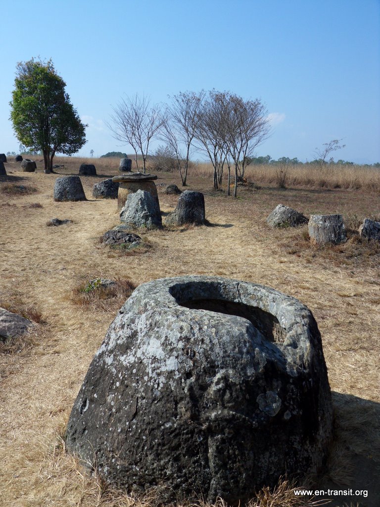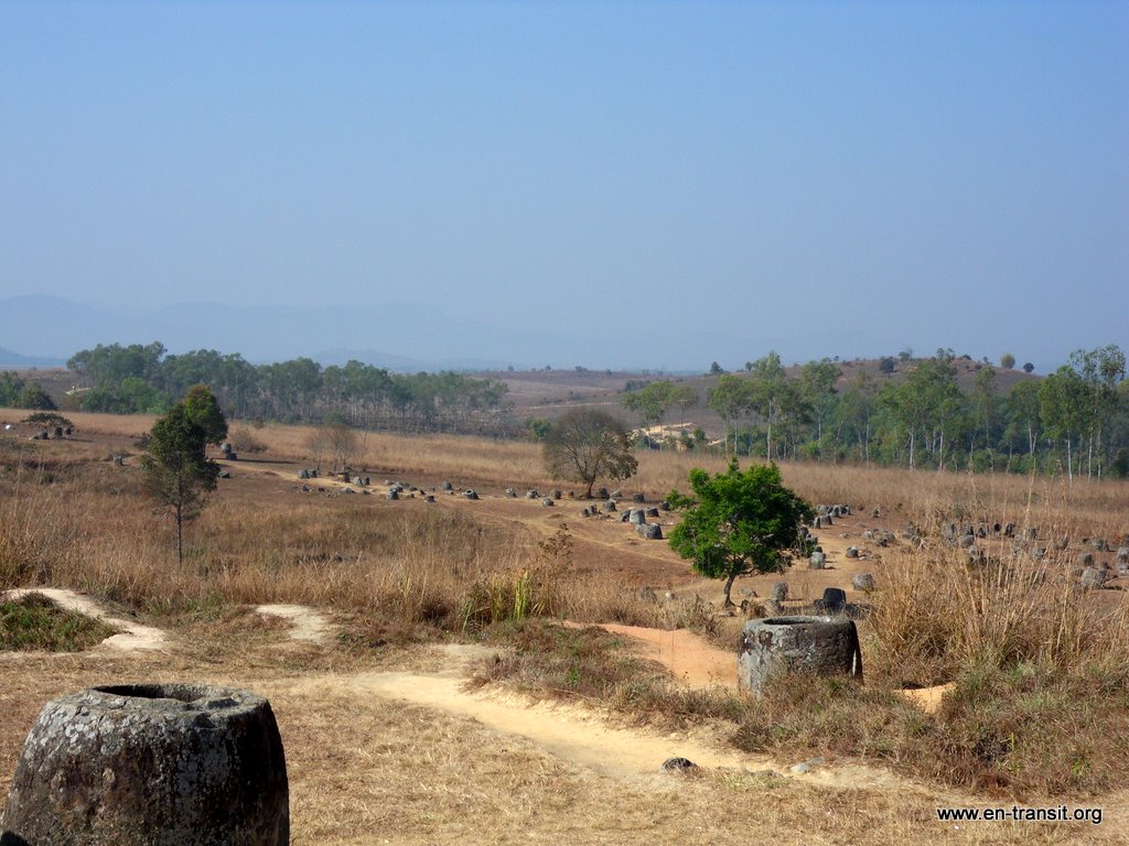 Notre première étape est la plaine des Jars. La légende raconte que ces énormes jarres de pierre étaient les verres (« jar » signifie « verre » en lao) dont se servaient les géants pour boire l'alcool de riz et qu'ils jetaient après utilisation pour se porter chance... se qui expliquerait leur disposition anarchique. Une autre explication, plus scientifique, dit que se sont des urnes funéraires.