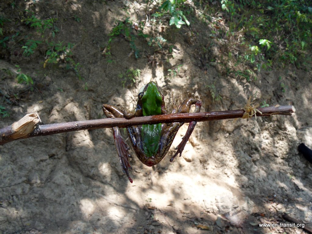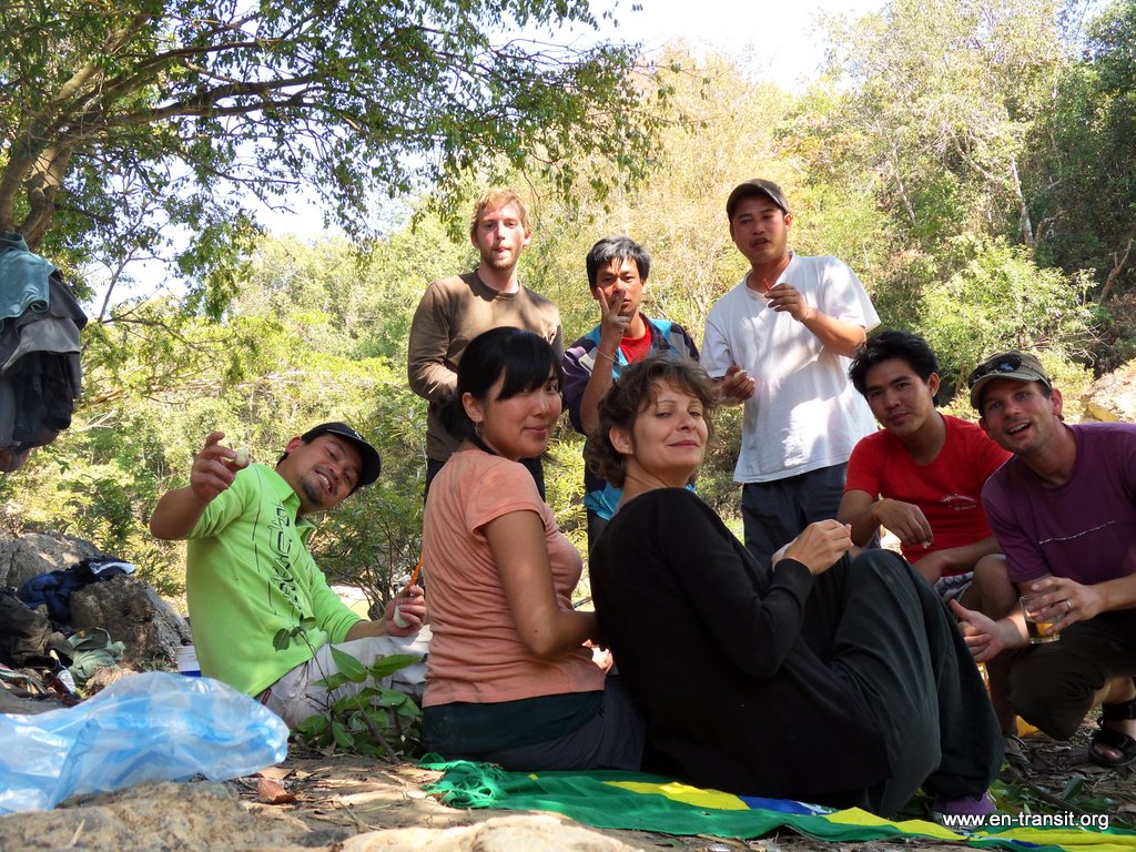 Nous sommes invités par la même équipe à une partie de pêche le jour suivant et découvrons les joies du pique-nique Lao : grenouille au feu de bois, oeufs de termites, piments et riz-collant. Journée très sympa au bord de l'eau.