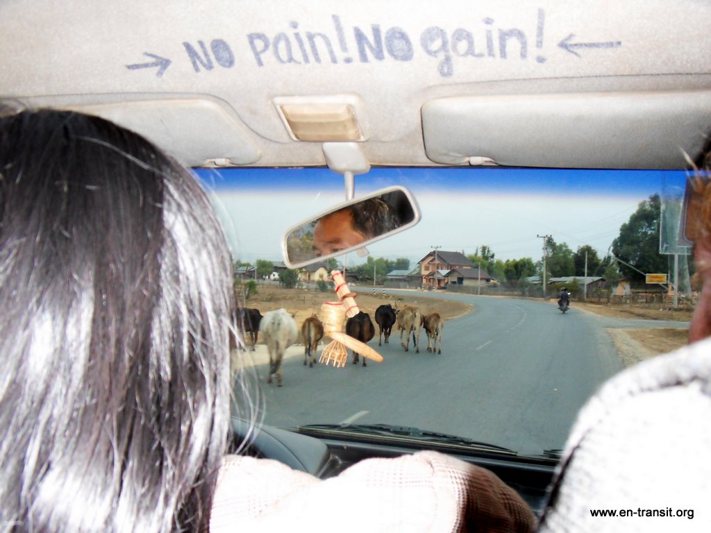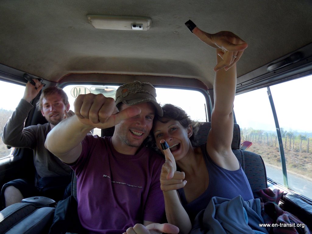 Après ce petit résumé historique, je vais pouvoir vous conter nos aventures phonsavaniennes. Fraichement arrivés dans cette ville pas hyper accueillante au premier abord, nous nous mettons à la recherche d'un tour. Nous pensons, à juste titre, que la visite de la région sera plus intéressante avec quelques explications. Nous trouvons notre bonheur et partons le lendemain matin à 8h accompagné de My, notre guide, ainsi que de Marc & Sophie, 2 américains, à bord d'un mini-van d'un âge certain...