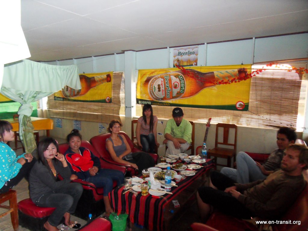 Afin d'éviter un long détour, nous prenons un bus en direction de Paksan. 12h de trajet sur une piste en terre avec un seul arrêt de plus de 2 minutes. Nous sommes crevés et couverts de poussière en arrivant.