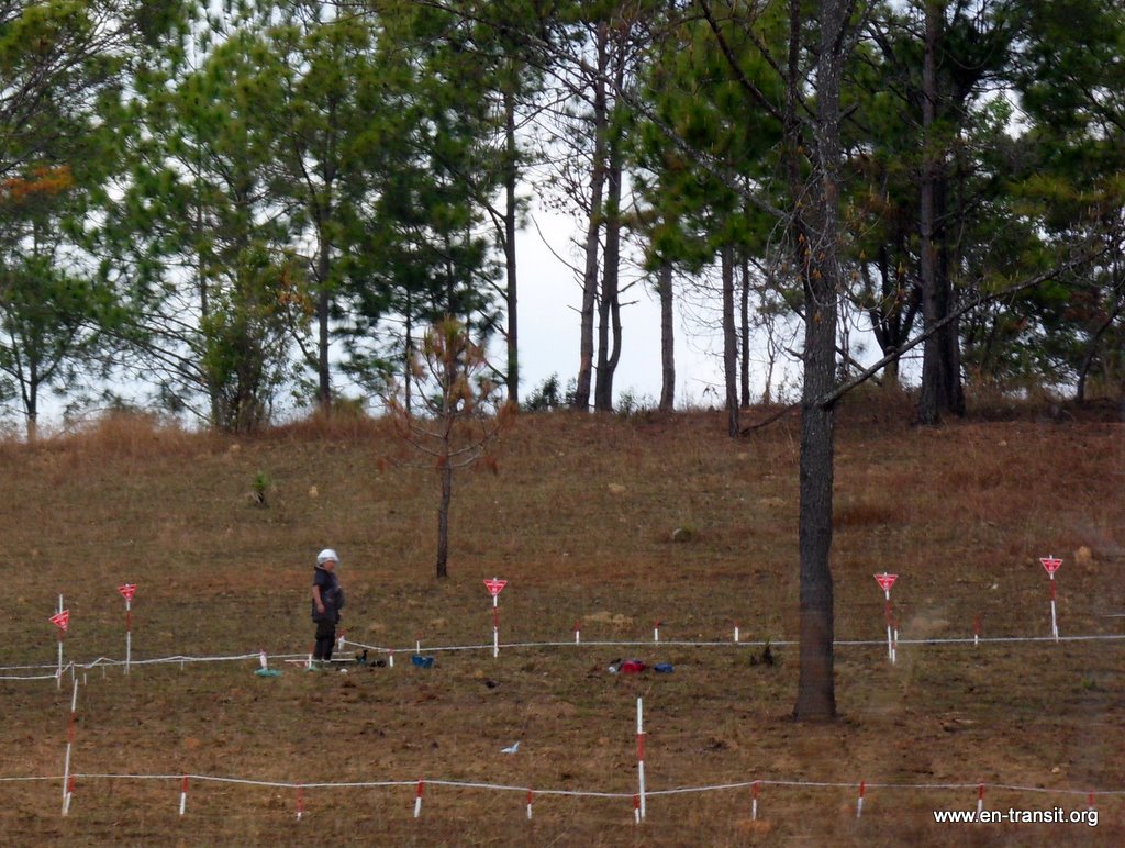 Puis, n'ayant pas le temps de faire le programme originalement prévu (panne oblige), nous grimpons une petite colline à 300m du village. Nous pouvons y observer une magnifique vue sur la vallée ainsi que d'autant réjouissantes que nombreuses UXOs (UneXploded Ordonnance = bombes non explosées).