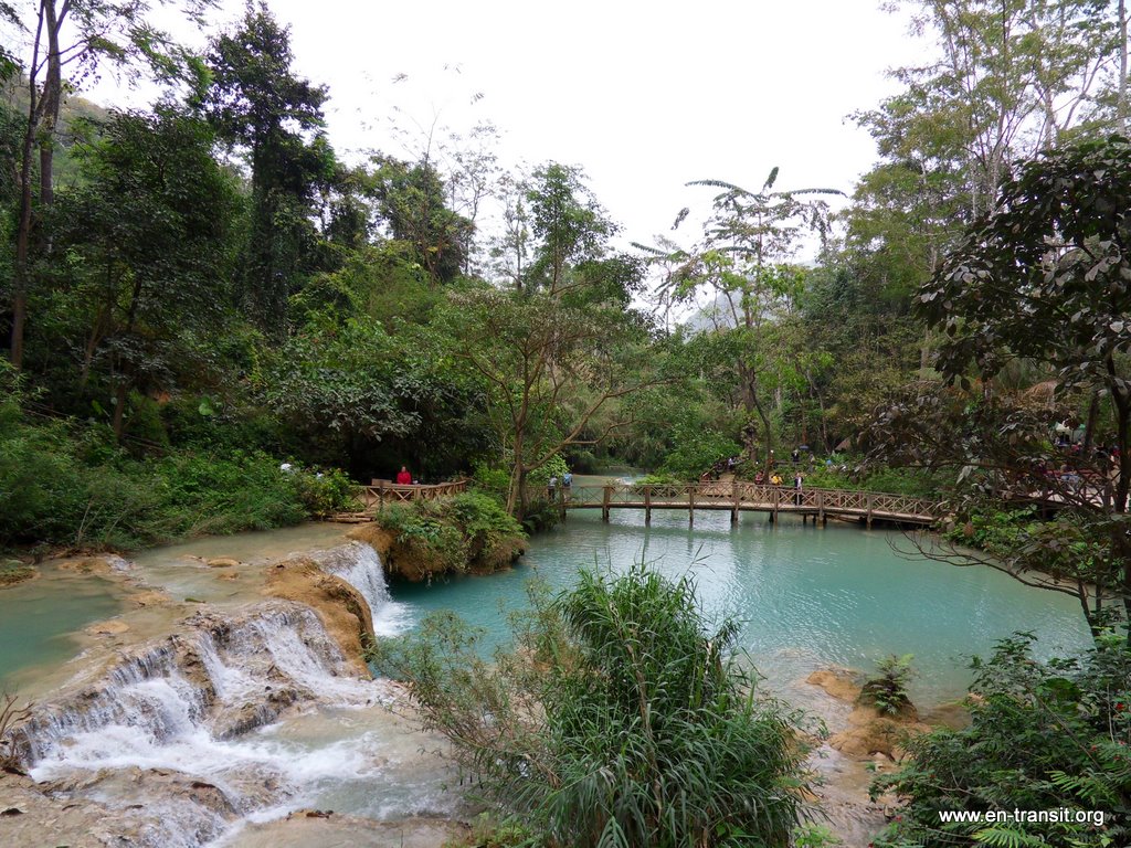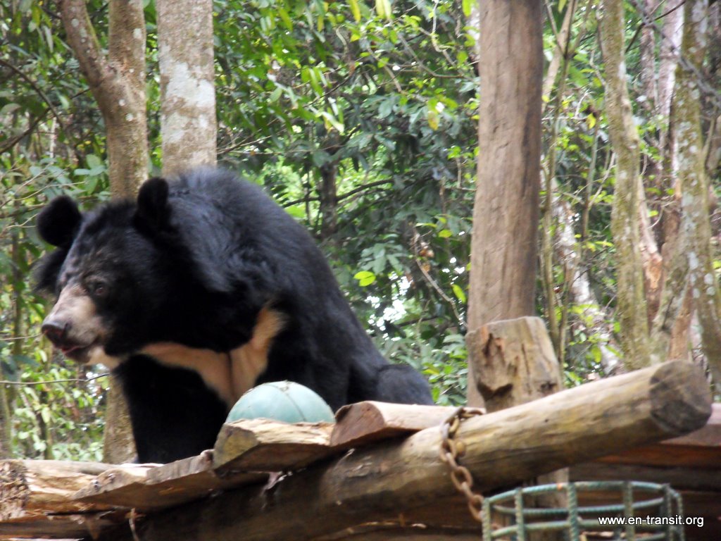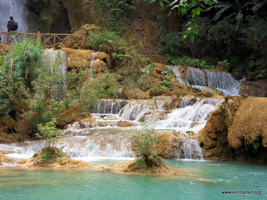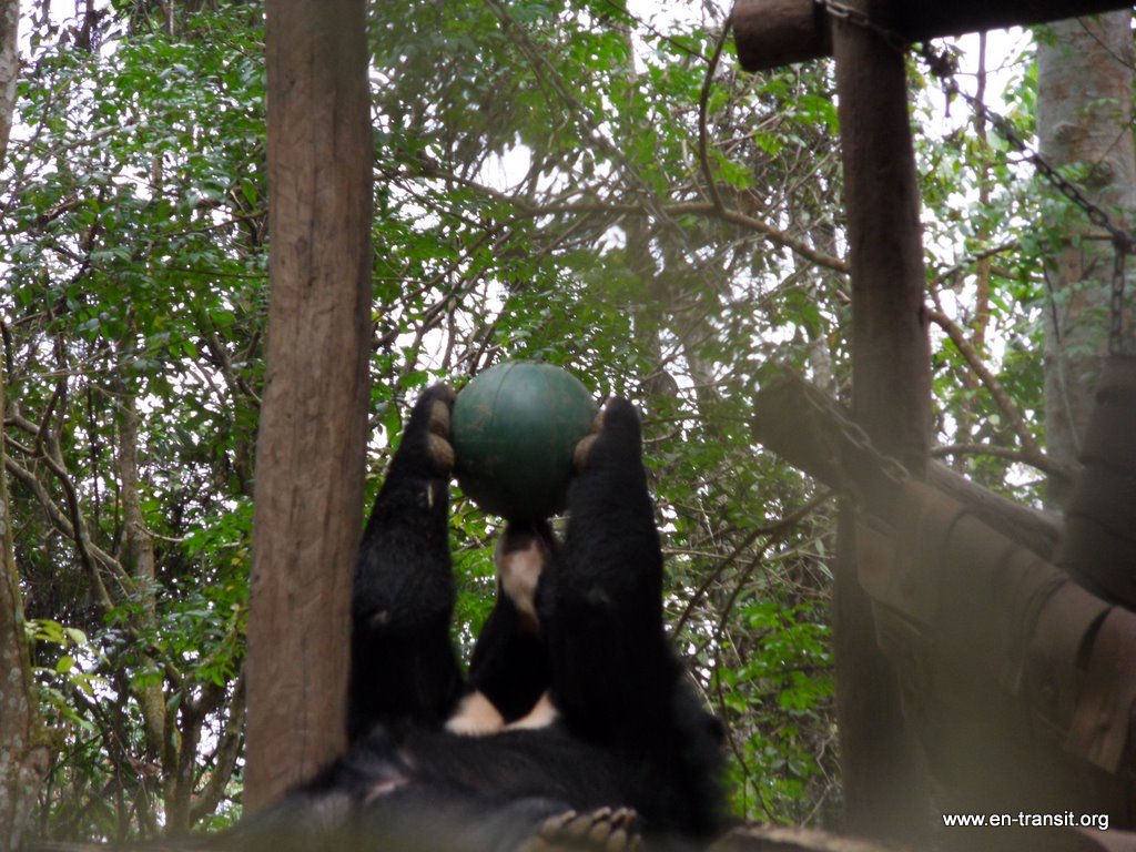 Les montées en valent la chandelle! Un parc en plein milieu de la jungle parsemé de belles piscines naturelles d'eau turquoise où plongent quelques courageux car aujourd'hui nous trouvons qu'il ne fait pas si chaud (dans les 25-26°C, quoi! ;) ). On voit même quelques ours (en enclos) qui font partie d'un programme de sauvetage, réhabilitation...
