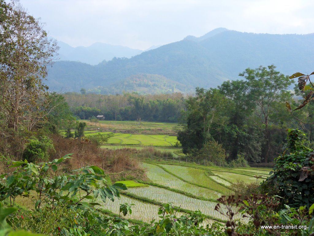 Nous n'avons pas fait d'étude de marché et n'avons pas pris les meilleurs vélos qui soient pour parcourir les 70 km (aller-retour) qui nous séparent des chutes... Nous avons croisé deux autres filles en VTT : pour elles, nous étions les héros du jour d'avoir fait le trajet sur ces machines! Mais nous avons vu de magnifiques paysages, rencontré de charmants gamins criant des « Sabaydee » (Bonjour) plein de conviction et des adultes aux « Sabaydee » moins tonitruants mais tout aussi sincères!