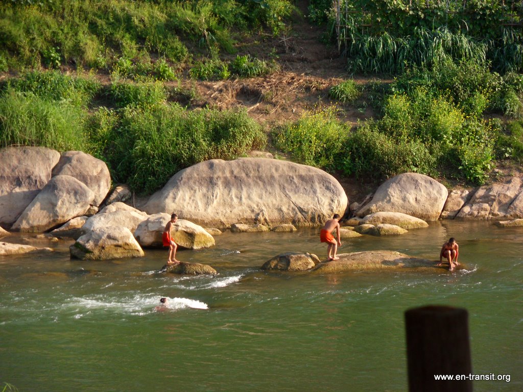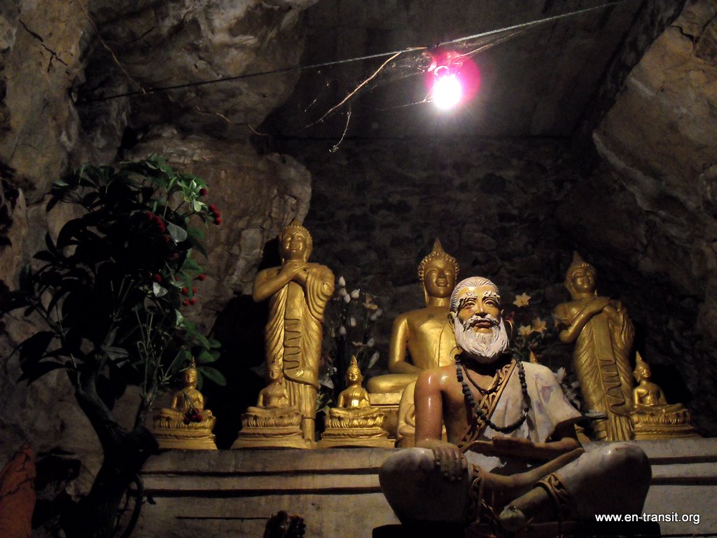 Mais au fait, qu'est ce que Pak-ou? Ce sont des grottes où sont entreposés des Bouddhas hors d'usage... En effet, étant abîmés, ils seraient susceptibles d'accéder moins efficacement aux demandes des fidèles. Du coup, ils sont remerciés et mis en retraite anticipée. Ça nous paraît amusant d'aller voir ça. Mais, on se rend compte qu'il faut payer pour prendre un bateau, puis payer pour les grottes, et enfin payer pour un autre truc que nous n'avons pas bien saisi... Pressés par le temps et un peu radins sur ce coup-là, nous arrivons à la conclusion que la balade en elle-même en valait la peine et que des Bouddhas tous crevés, ça doit être nul! (C'est ça d'avoir gardé son esprit adolescent! ;) )