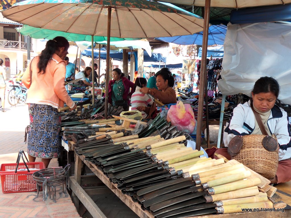 Car lorsque nous arrivons dans la ville, ce que nous remarquons, ce ne sont pas les magnifiques maisons coloniales à la française, les nombreux temples ni la rareté du trafic mais les visages majoritairement occidentaux, les bars à vins très tendance et le marché à souvenirs (très beaux soit dit en passant) pour touristes sur le départ... A peine un pied posé, nous avions envie de repartir pour rencontrer du plus authentique... Au moins un ou deux laotiens, quoi! Du coup, nous avons fantasmé sur l'achat d'un tùk-tùk pour parcourir le pays et quitter les routes pré-tracées... N'ayant pas trouvé où ces merveilleuses machines étaient fabriquées, nous avons renoncé et à la place loué des vélos!