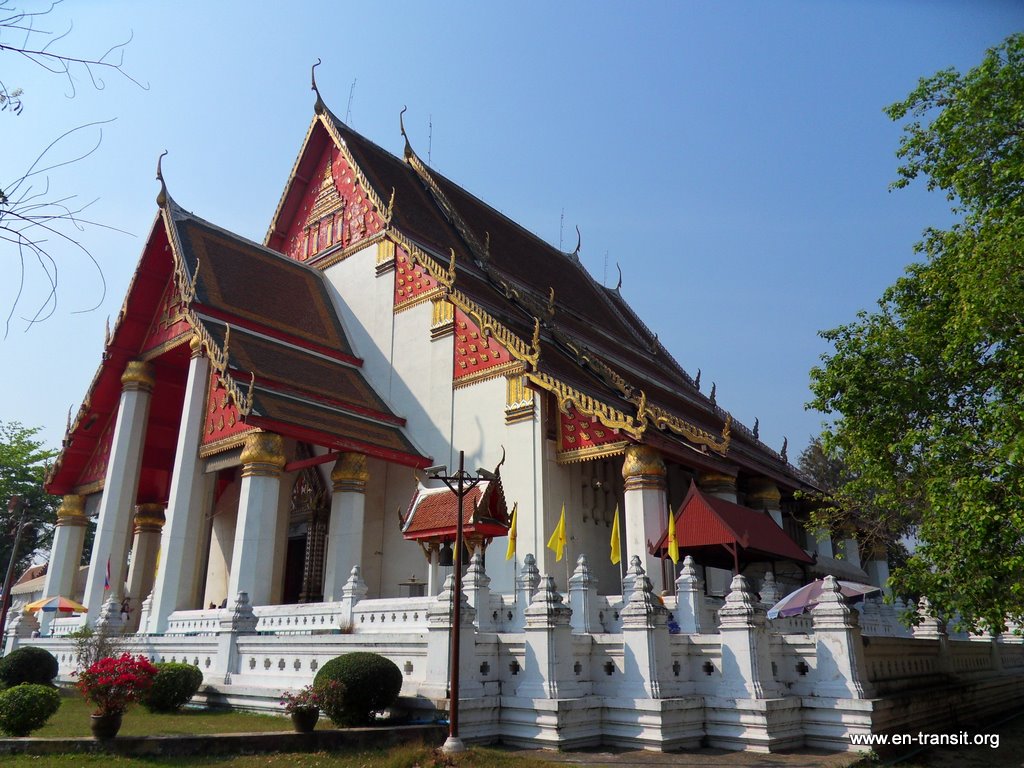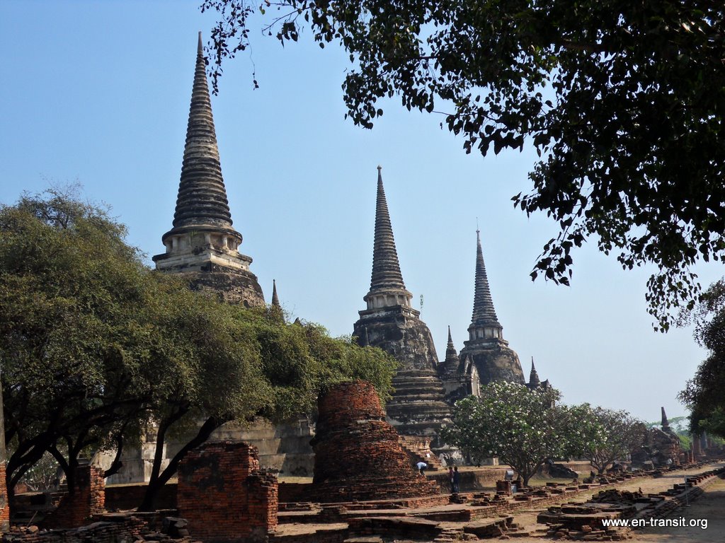 La ville est parsemée de temples et nous avions, au départ, l'intention d'en visiter la plupart. Nous débutons par le Wat Phra Si Sampret et ses 3 imposants « chedis » (tour en forme de cloche qui contient cinq éléments symbolisant la terre, l'eau, le feu, le vent et le vide). Le site est grandiose, mais il ne reste pratiquement que des ruines et sans explications, les pierres ne nous parlent pas...