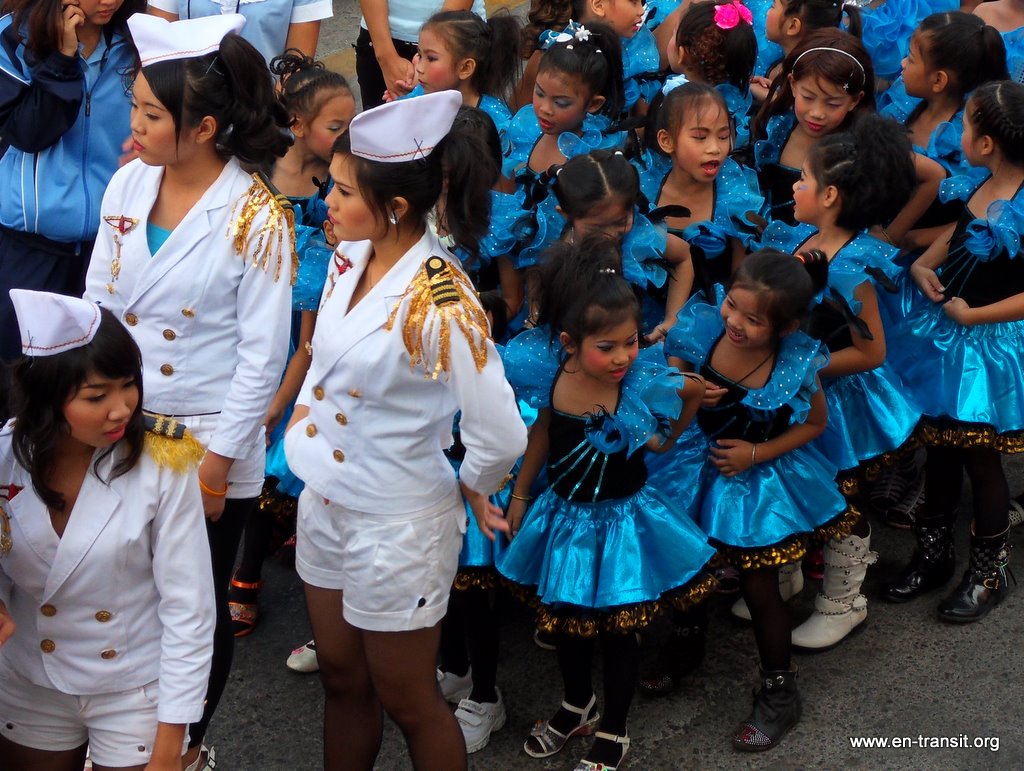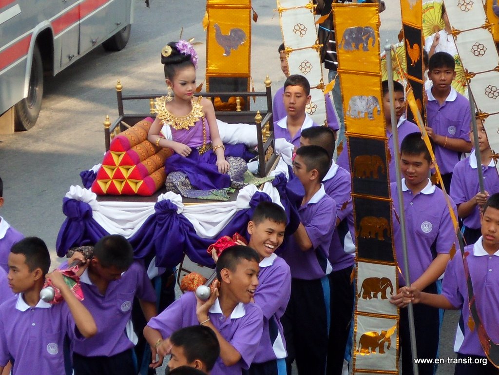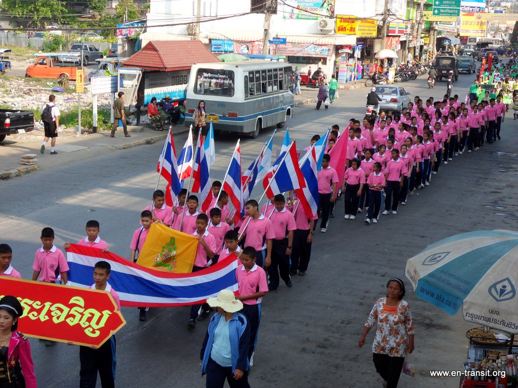 Nous ne restons qu'une nuit à Ayuthaya et reprenons le train pour Phitsanulok. Ce devait être une base pour visiter les ruines de Sukkotai mais vous l'aurez compris, nous avons changé d'avis et nous repartons le lendemain pour Chiang Mai. Histoire de se reposer des 6 interminables heures de train (elles sont loin les 20h de bus argentin!), nous passons une nuit à Phitsanulok où nous avons le plaisir (sans rire) d'être réveillés par une fanfare et un défilé des écoles.