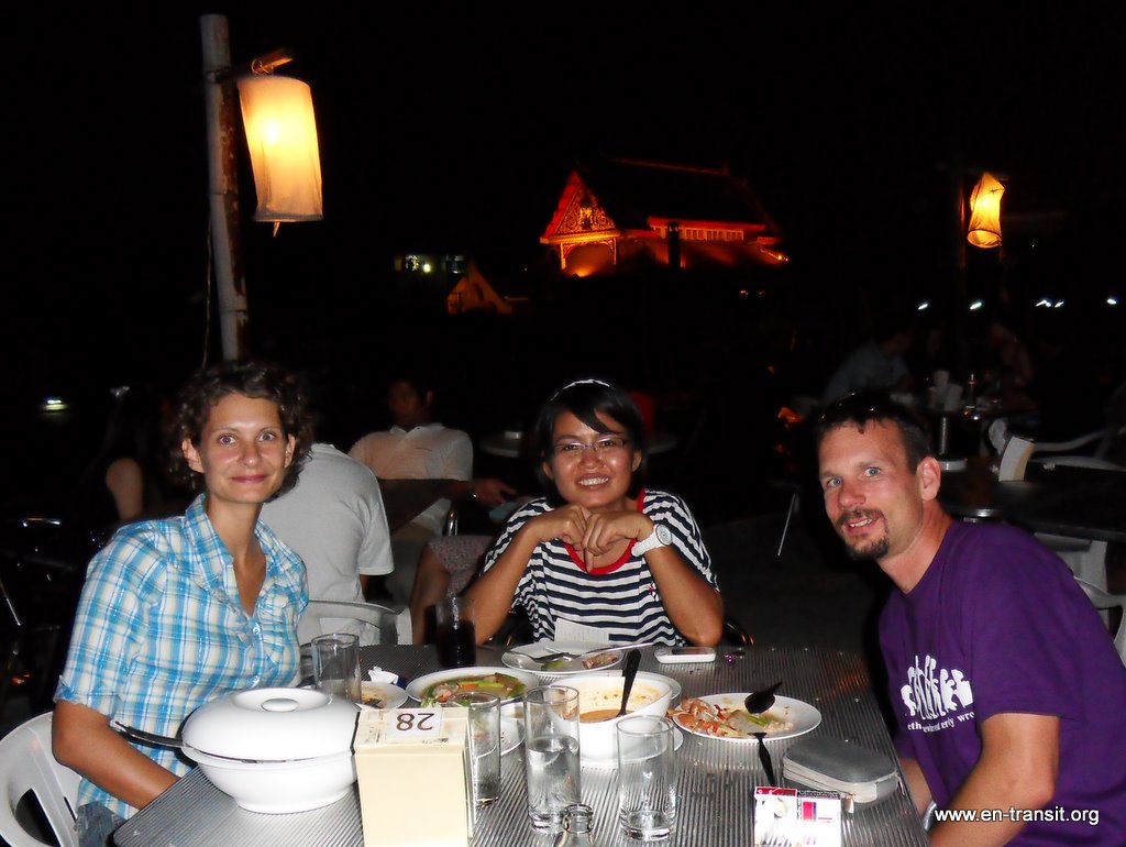 Nous passons notre dernière soirée à Bangkok avec Pat, une amie thaïlandaise de Sam, dans un très bon restaurant où elle nous fait goûter d'excellents plats thaï.