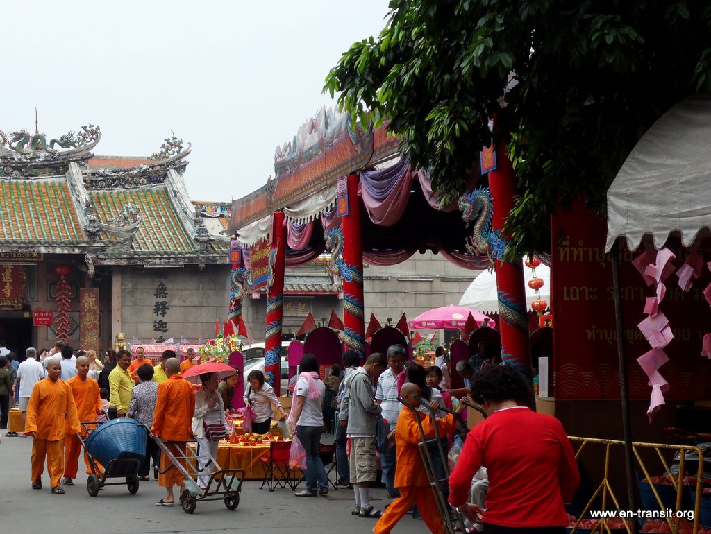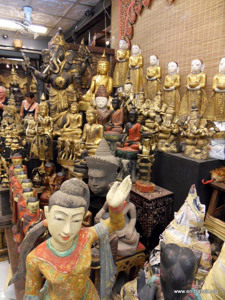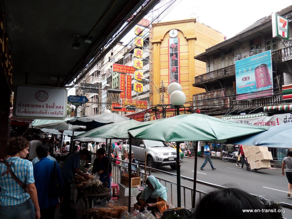 Nous destinons le reste de notre temps à visiter la ville, qui n'est pas magnifique mais à laquelle j'ai pris goût. Le temps est plutôt pluvieux et froid, ce qui est totalement anormal à cette période de l'année... Il y a même une nuit où nous avons regretté d'avoir renvoyé nos sacs de couchage en France ! Nous empruntons les moyens de transports locaux pour nous déplacer : tùk-tùk, métro, sky-train, bateau-bus (de loin le plus sympa). Nos errances nous ont menés à Silom Road, au parc Lumphini où les gens viennent faire leur aérobic, à Chinatown et ses marchés à n'en plus finir, et à la foire de Chattuchak le samedi quand l'ambiance est à son paroxysme.