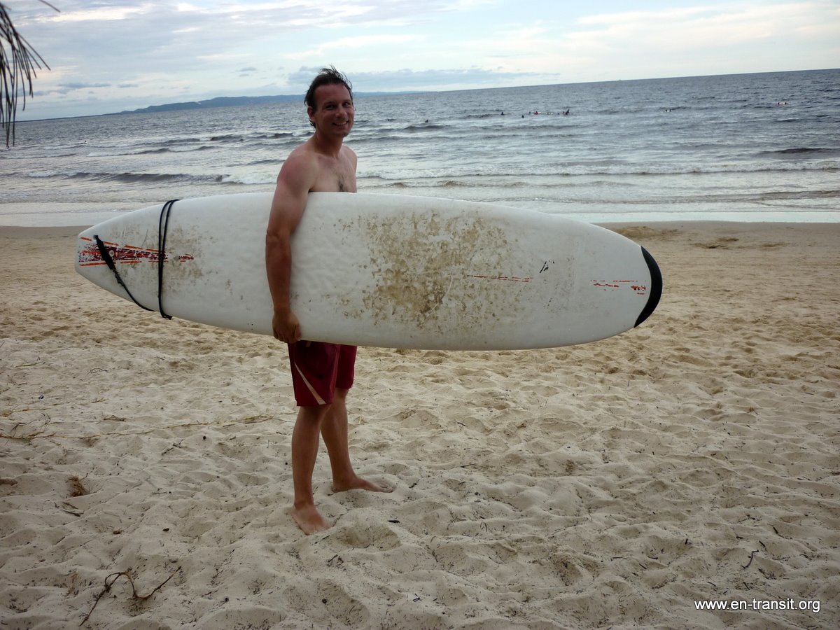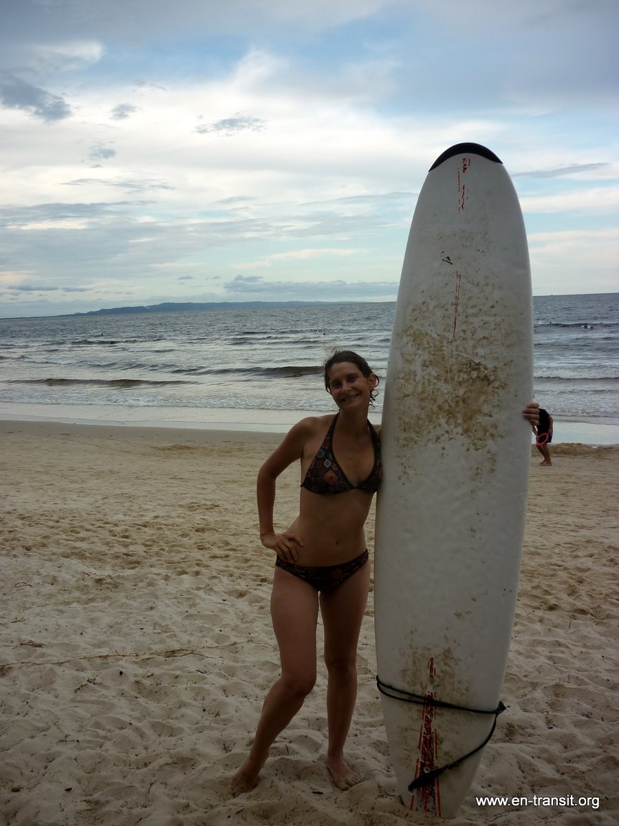 Les jours suivants, grâce au prêt de planches par l'hostel, nous nous essayons au surf. Renaud, prend quelques vagues (pas assez à son goût) et un énorme coup de soleil dans le dos! Merci l'Australie et son trou dans la couche d'ozone qui rend le soleil plus que dangereux... Je ne prend pas une seule vague, par contre je bois la tasse et j'ai des bleus partout à force de monter sur la planche... Le soleil est moins agressif avec moi et j'ai désormais un magnifique teint halé! J'ai au moins réussi ça! :)