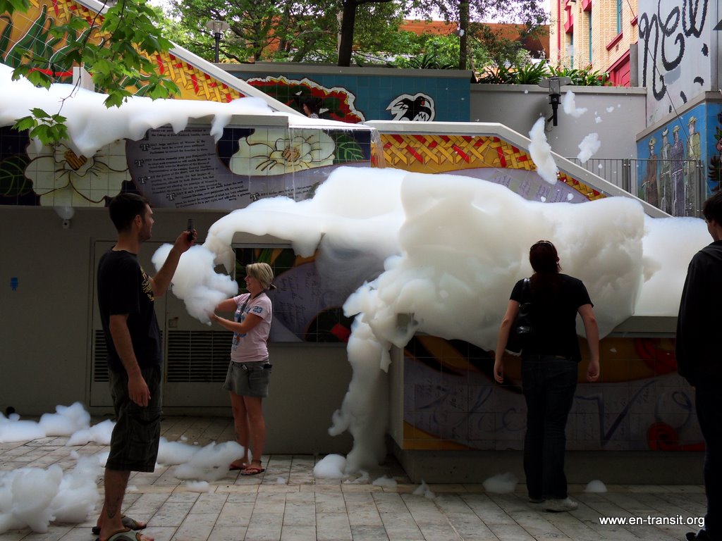 Vendredi, c'est quartier libre. Nous nous rendons dans le centre d'Auckland avec le train de banlieue. Nous nous promenons dans le quartier des galeries d'art. Les peintures de visages de chefs Maoris par Goldie sont particulièrement remarquables. Puis nous passons au pied de Sky Tower en allant au Taste Festival à Victoria Park. Les parents de Sarah W nous ont donné une invitation moitié prix pour 2 personnes. ;) Le principe de base de ce festival est d'aller goûter les produits du pays et les plats de grands chefs. Yark, yark ! On va se gaver pour pas cher ! Enfin ça c'est se qu'on croit... Car une fois à l'intérieur, pour goûter un plat, il faut encore payer et c'est pas donné ! Heureusement pour nous, quelques stands proposent des dégustations gratuites : fromage, yaourt, saucisse, cidre, vin... Tout n'est pas perdu :) Puis nous retrouvons Sarah après une petite siestoune à Albert Park.