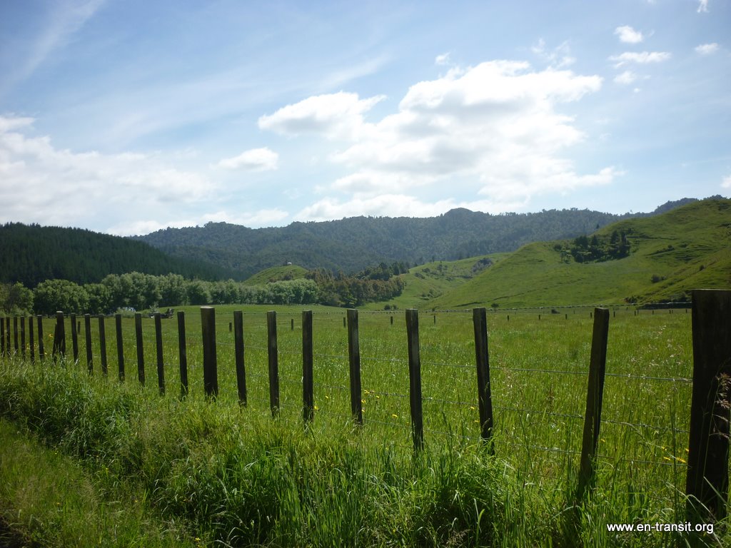 Direction la péninsule de Coromandel où nous avons l'intention de nous reposer de la première semaine, du décalage horaire, des litres de vin rouge ingérés et pourquoi pas, faire quelques randonnées. Après quelques courses au Pack'n Save (le Leader Price du coin), nous nous installons dans un camping DOC (Department Of Conservation, l'équivalent de notre service des eaux et forêts). Il en existe de plus ou moins bien équipés. Celui-ci est tout ce qu'il y a de plus basique : des places de camping, des barbecues un peu rouillés et deux toilettes sèches (propres, avec PQ et savon sans rinçage, youpi!). Il n'y a pas toujours d'accueil dans ces campings. Du coup, l'administration a mis en place un système pour le paiement : chacun, à son arrivée, remplit un coupon qu'il faut accrocher à la voiture et une enveloppe où glisser son dû, à poster à l'entrée du camping. Un ranger passe chaque jour relever la boîte et vérifier que chacun a accroché son étiquette. C'est une chose à laquelle nous n'avions pas pensé : un peu compliqué de payer 18,40$ avec des billets de 50$! Il faudra penser à faire de la monnaie. Nous réglons en partant au bureau de l'administration, honnêtes gens que nous sommes (parce que franchement, nous aurions pu nous barrer sans payer...)