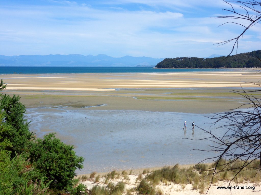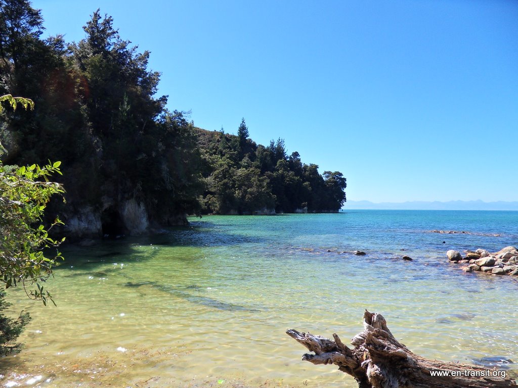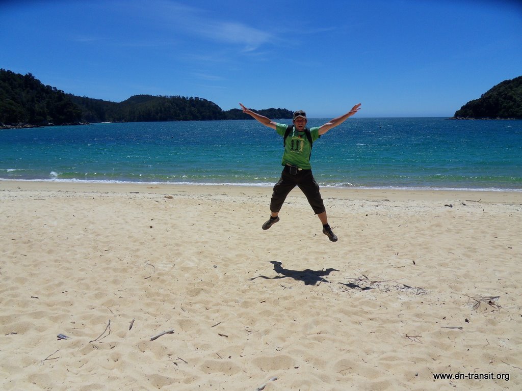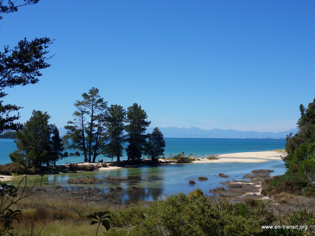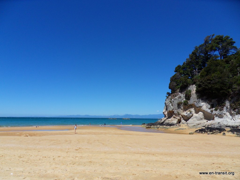 Re-Fangio au réveil pour rejoindre le début de la rando côtière d'Abel Tasman. Nous n'en faisons que la première partie jusqu'à Anchorage Bay car il nous faut faire le retour dans la journée. Les plages et criques paradisiaques s'enchainent sous nos pupilles émerveillées. C'est un pur bonheur que d'échanger nos gros godillots poussiéreux et nos chaussettes puantes contre de légères schlaquettes plastiques.