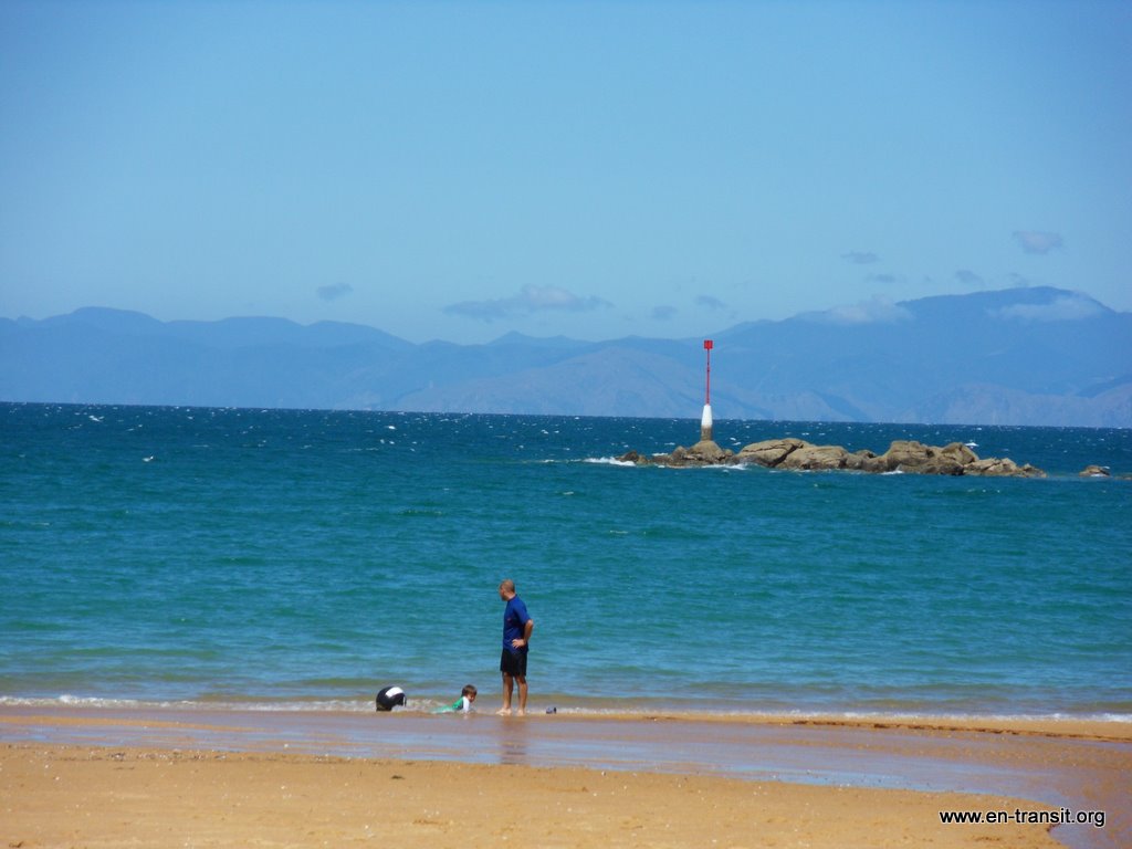 Avant de partir pour le parc Abel Tasman, nous nous arrêtons à la superbe crique de Kaiteriteri pour un pique-nique agrémenté de sable et de crème solaire.