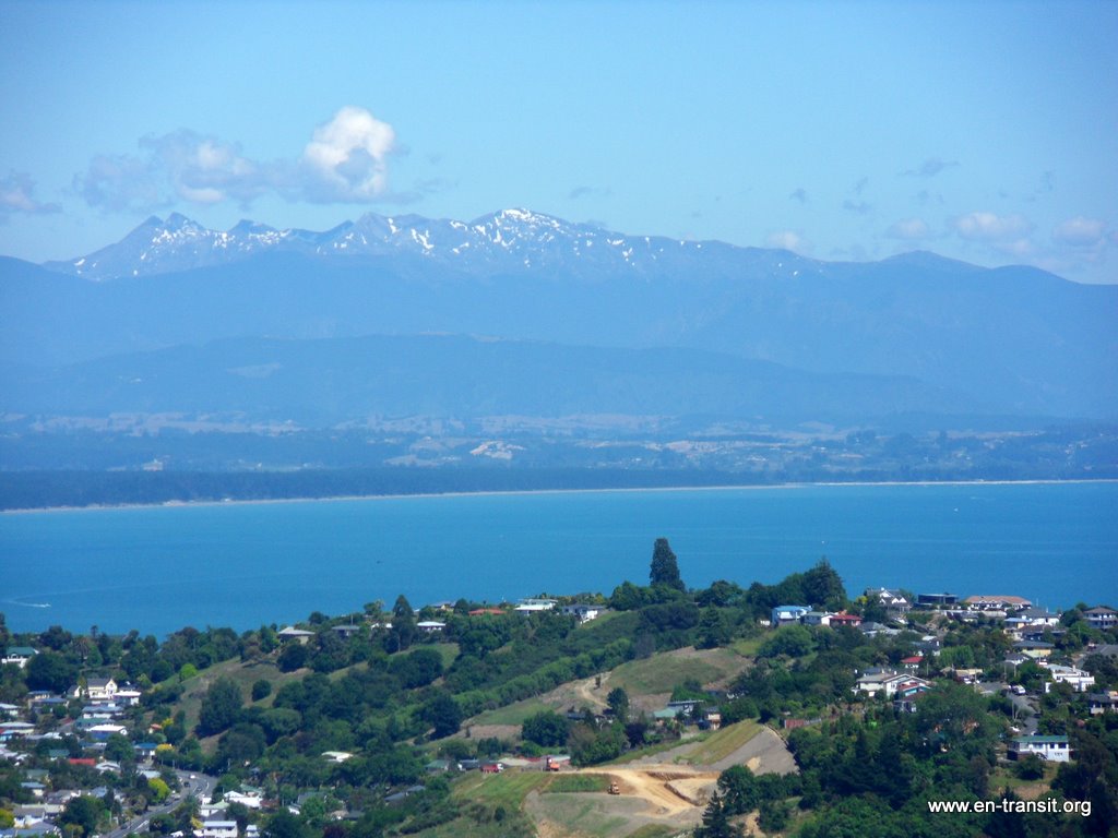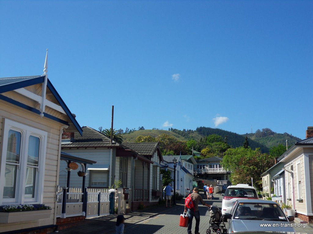 Le lendemain, nous effectuons une rapide visite de Nelson :une cathédrale toute moche, South Street où se trouvent les plus vieilles maisons de Nouvelle-Zélande (très jolies, mais il n'y en a que dix), et 2h de ballade pour rejoindre le centre de la Nouvelle-Zélande avec point de vue sur la ville.