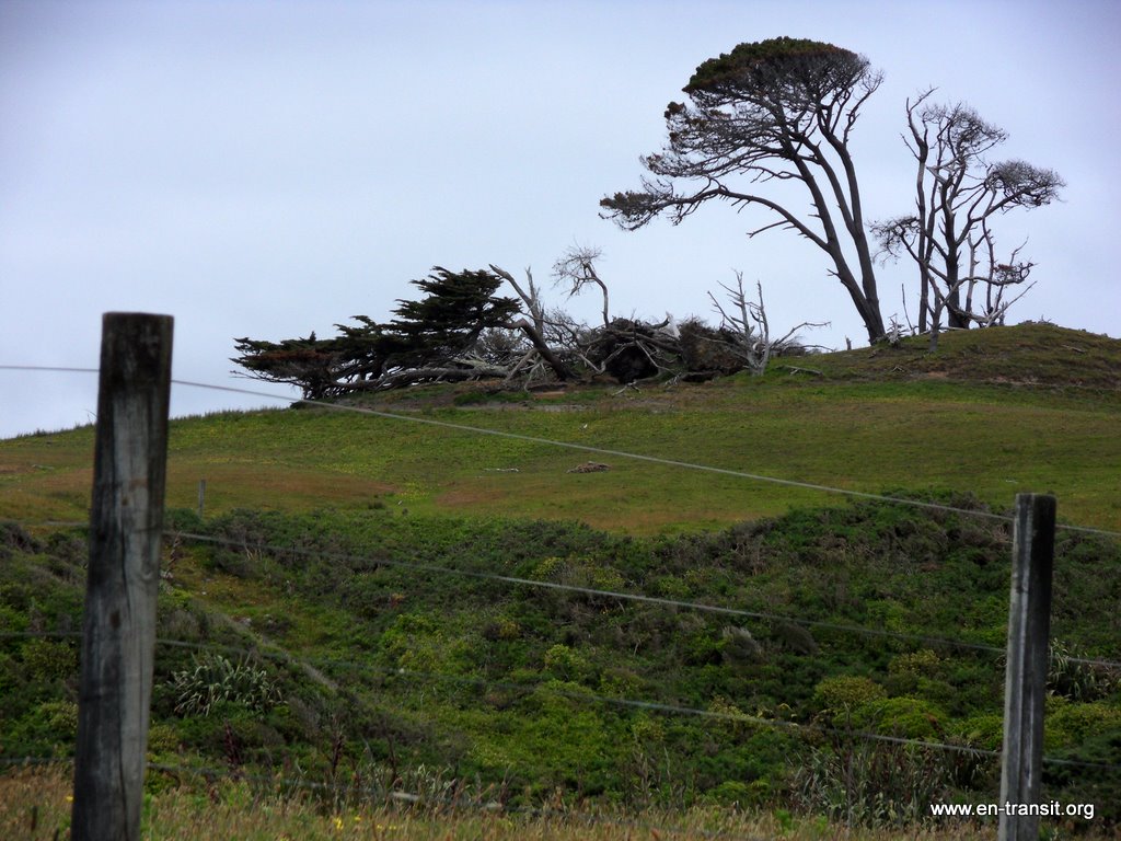 Ce n'est pas quelques mouches, ce sont des nuées de mouches qui nous tournent autour, qui rentrent dans le van. Je me vois mal passer la nuit ici. Nous décidons d'aller un peu plus loin, au camping DOC suivant. Là-bas, c'est tout autant l'horreur. Je n'ose même pas manger de peur d'en avaler! Je suis au bord de la crise de nerf. Je fantasme sur la moustiquaire-chapeau ridicule du suisse que nous avions rencontré au Pérou. C'est pire que dans la jungle car les mouches sont nettement moins discrètes que les moustiques et elles sont plus nombreuses. Ca fait penser au film d'Hitchkock, sauf qu'à la place des oiseaux, il y aurait des mouches! Nous nous barricadons dans le van et essayons d'en zigouiller le plus possible en les attirant vers le néon... Vu que nous n'avons plus d'épisodes de Desesperate Housewives, il faut bien s'occuper! ;)