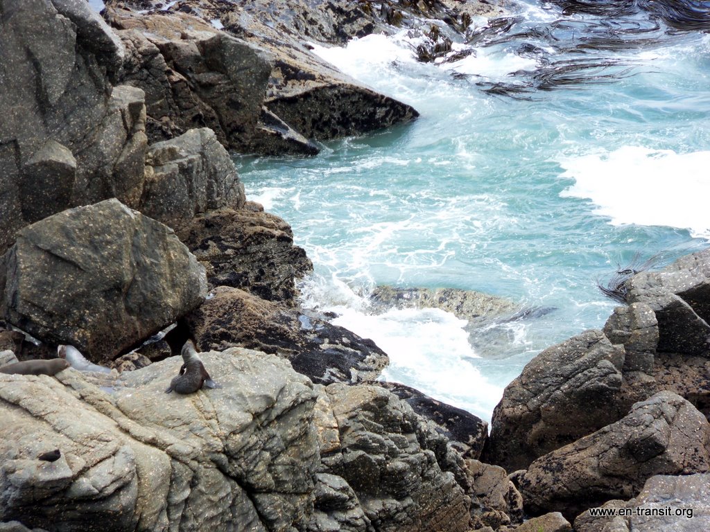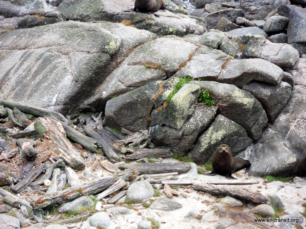Sous un temps menaçant, nous faisons une petite balade au bord des falaises et allons admirer une colonie de phoques. Je ne suis pas très au point sur la différence entre phoques, otaries, lions de mer, éléphants de mer et tutti quanti : ce sont des « Seals », traduisez comme bon vous chante, mais je suis sûre que vous voyez de quoi je parle!
